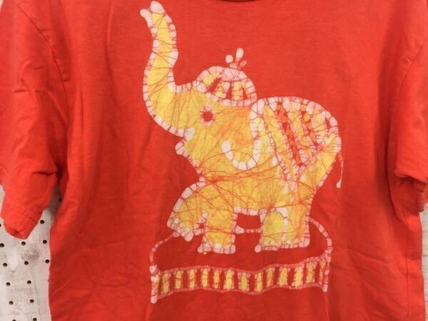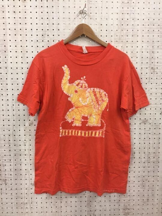 USA製 オールド レトロ 90s 古着 エスニック オリエンタル アジアン 絞り染め ゾウ 象さん タイダイ 半袖Tシャツ メンズ M オレンジ