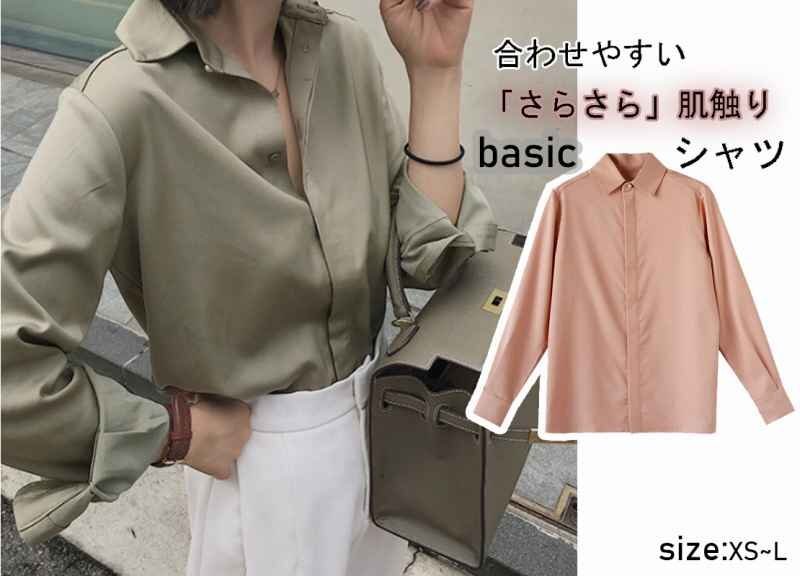 全体的にシンプルなデザイン、サラサラした肌触り、シャツの一番上のボタンにパールが付いているのがポイントです。