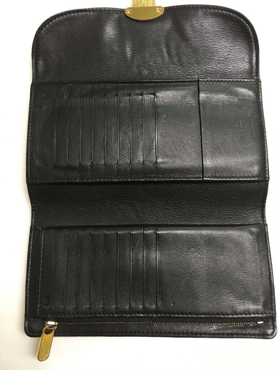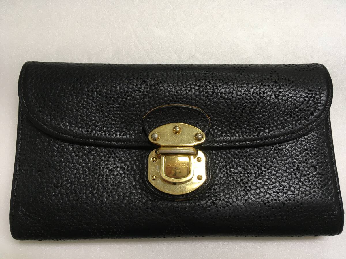 1円 ルイ ヴィトン マヒナ ポルトフォイユ・アメリア 長財布 レディース レザー ブラック M95549 中古