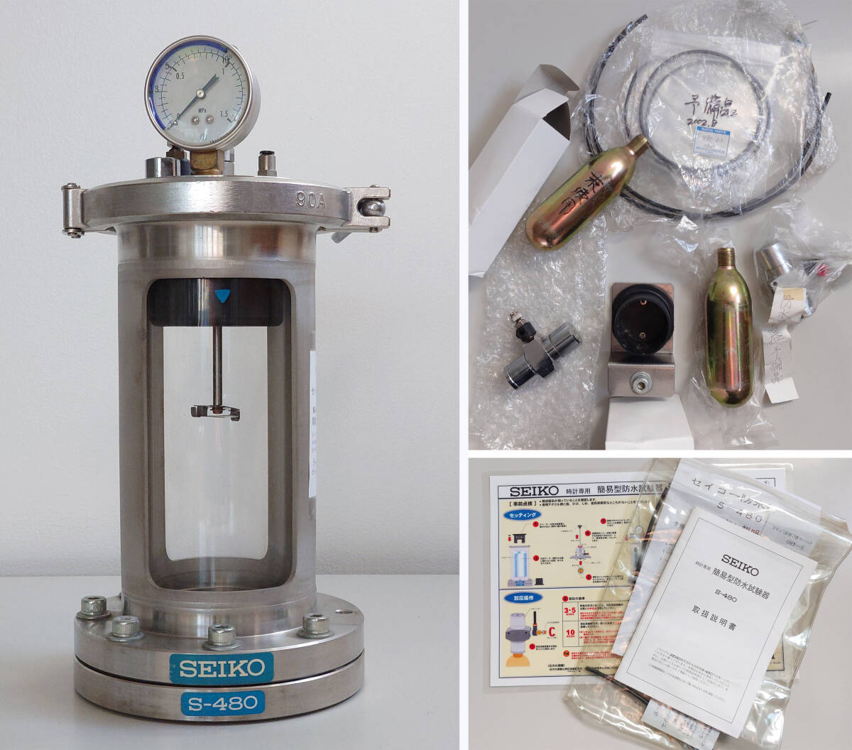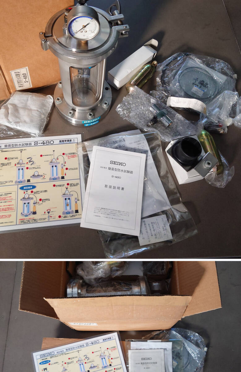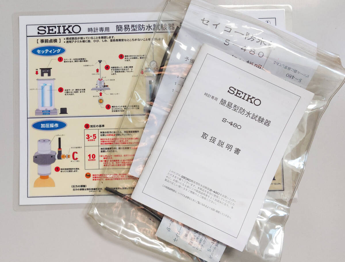 セイコー 時計専用 簡易型防水試験器 S-480 予備部品・取扱説明書・箱付き / ダイバー OH 分解掃除