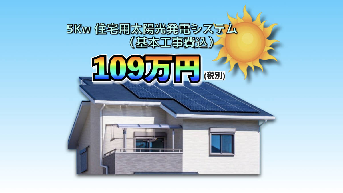 ヤフオクだけ! 基本工事費込み 109万円(税別)5Kw太陽光発電システム 高効率ソーラーパネル使用