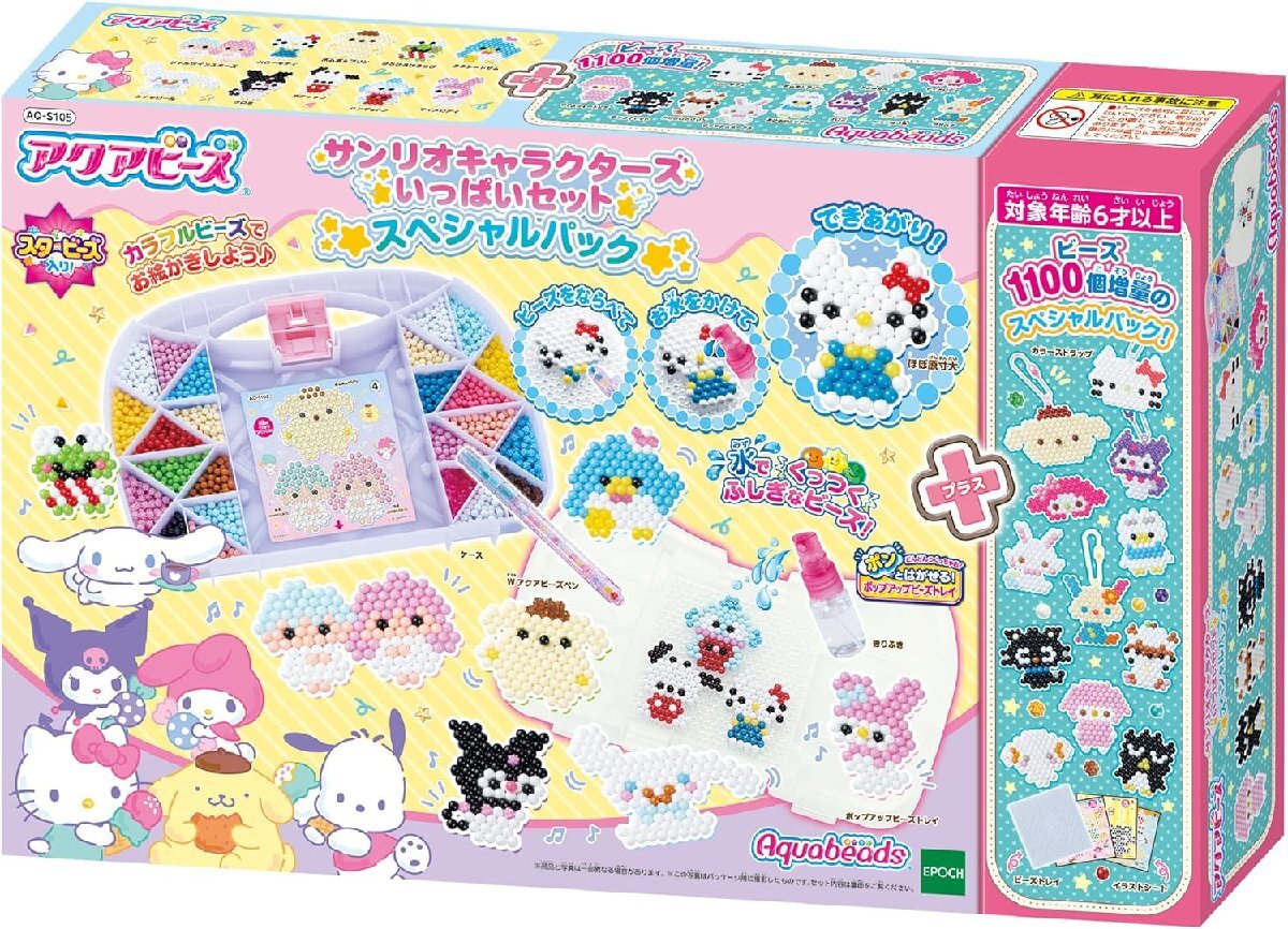 「サンリオキャラクターズ いっぱいセット」に、ビーズ・イラストシートを増量し、さらにビーズトレイ・チェーンパーツ・カラーストラップをプラスして新登場!