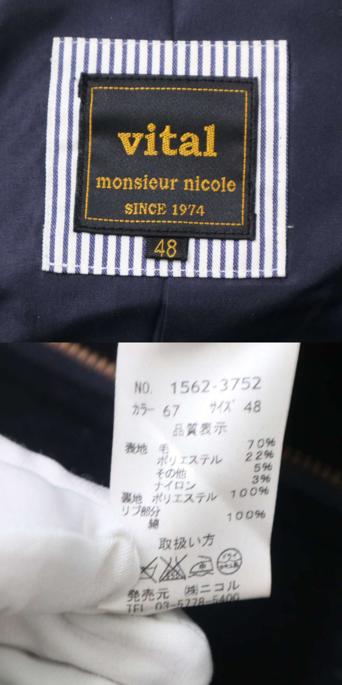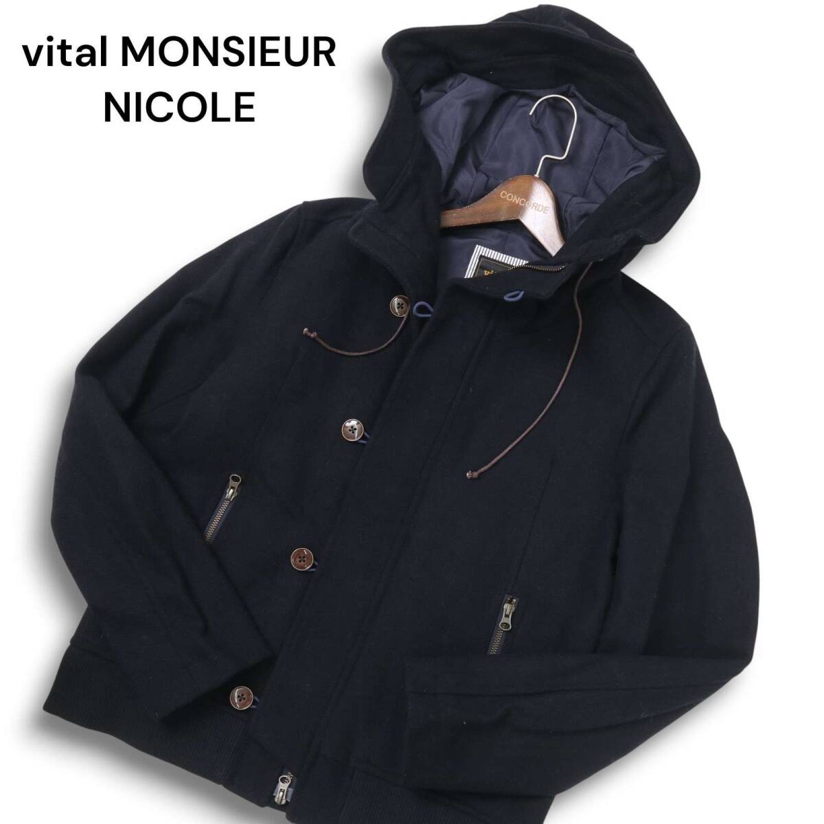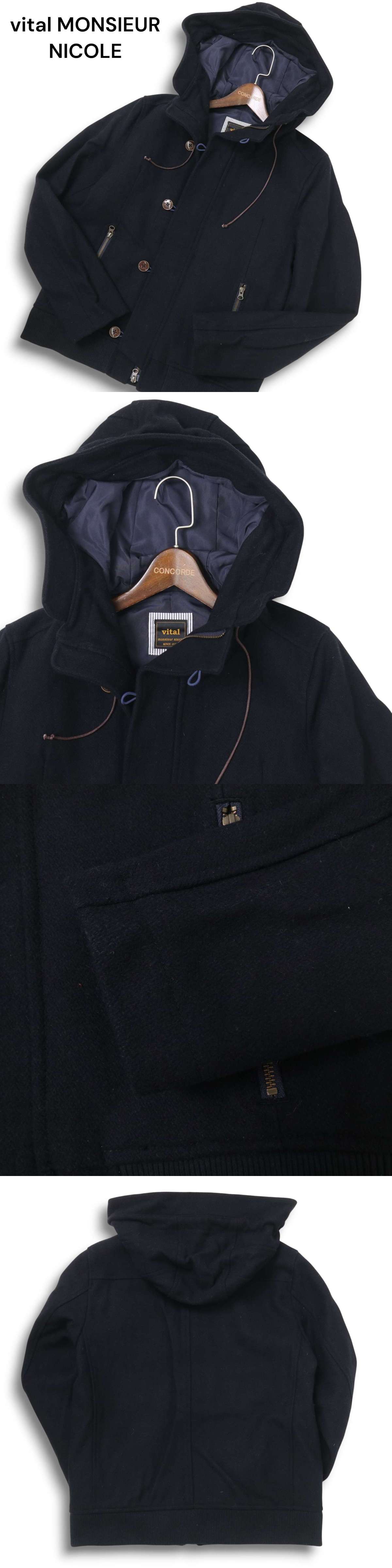 vital MONSIEUR NICOLE ムッシュ ニコル 秋冬 ウール★ フーディー ブルゾン ジャケット Sz.48 メンズ 紺 ネイビー