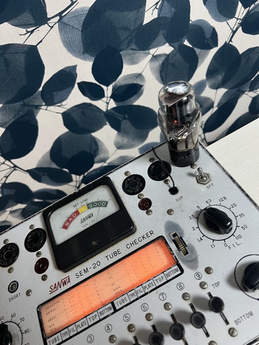 当方の試験機で同型式の未使用の真空管を試験すると95程度の値を示しますので基準として参考にしてください。