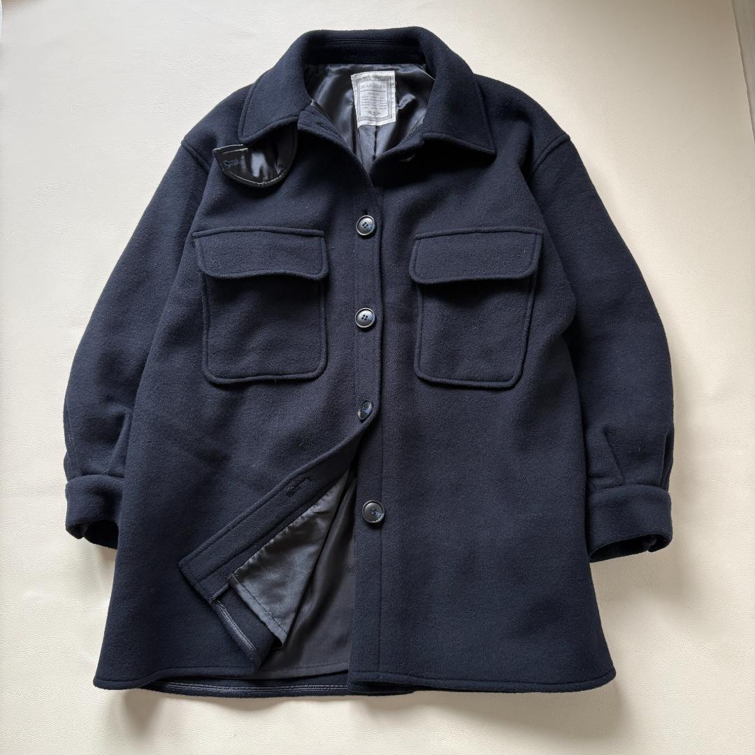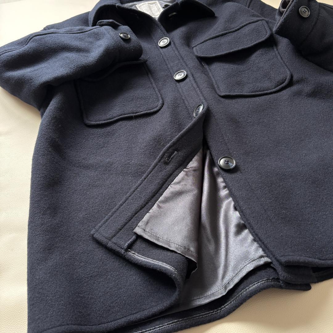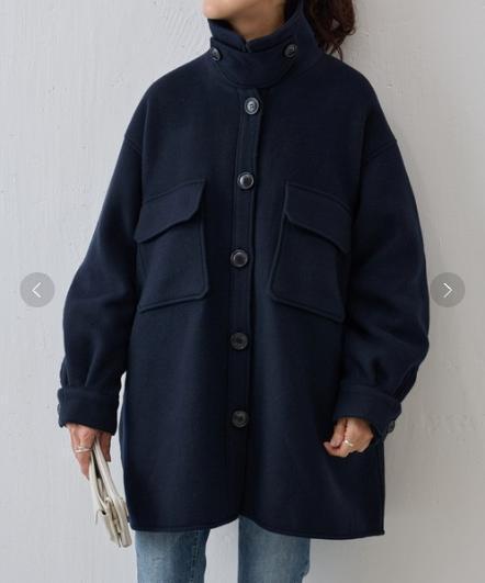ビッグシルエットのシャツ型コート。ナイロン混のウール素材で、裏地もついていて温かく着られるアイテム。袖口は二重になっていて、内側にリブ袖がついているので、冷気が入らず防寒対策もばっちり