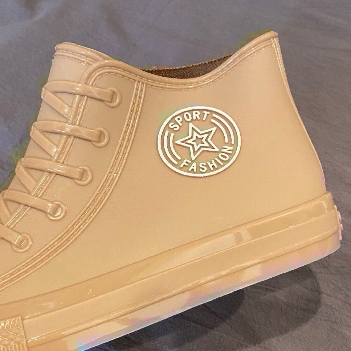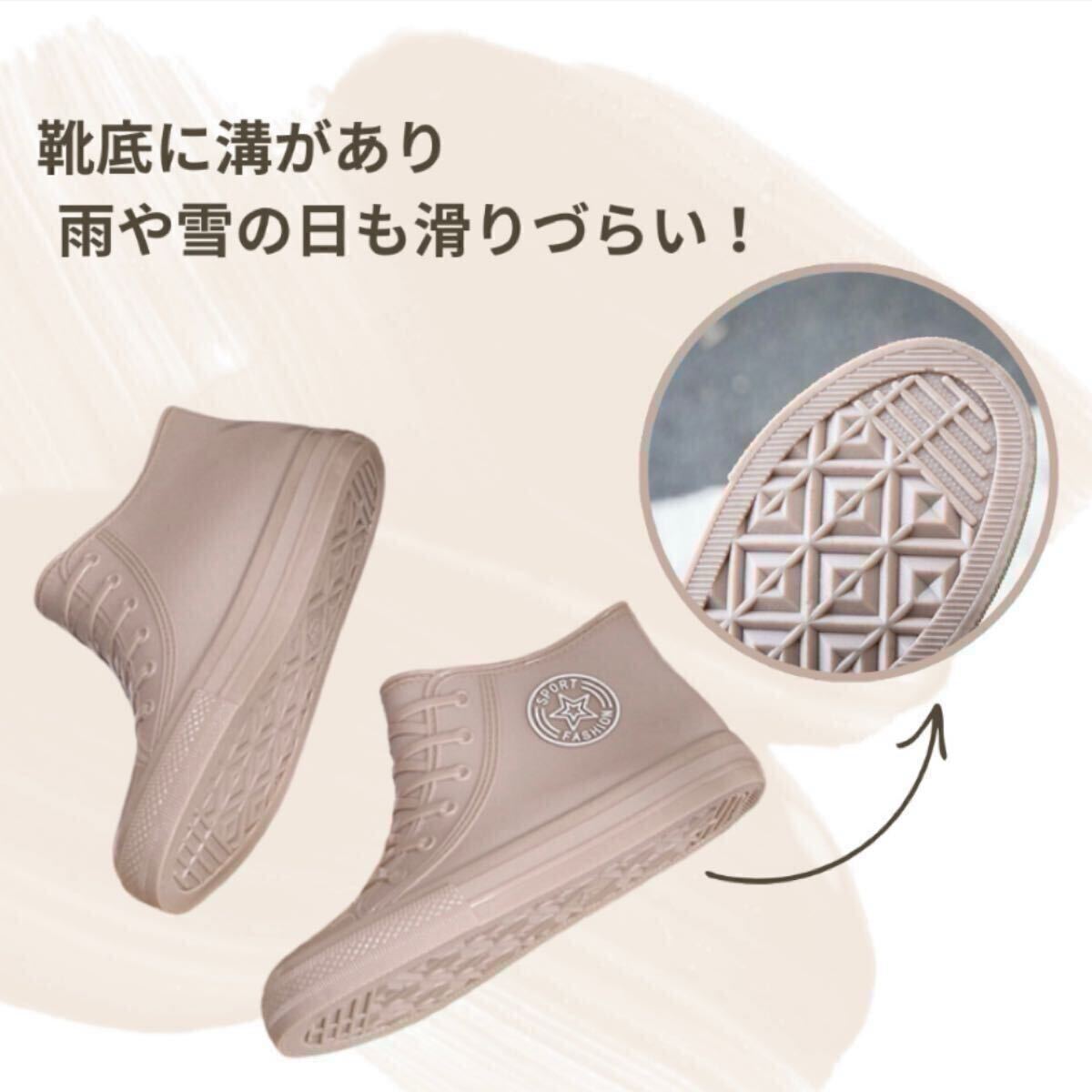 22.5 レインブーツ 長靴 ハイカット レインシューズ ベージュ 雪 防水 雨 スニーカー風 ショー ト 滑り止め 子供 キッズ 通勤 通学 新品