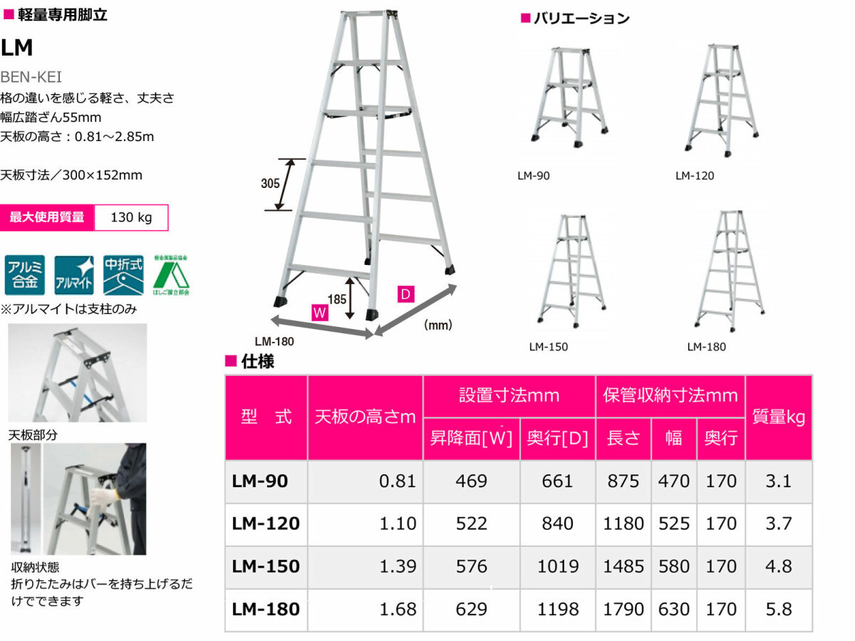 【代引不可】【オススメ】〈ピカ〉軽量専用脚立 折りたたみ LM-90 【大型・重量物】事前お問い合わせ品 JAN:4989247435089