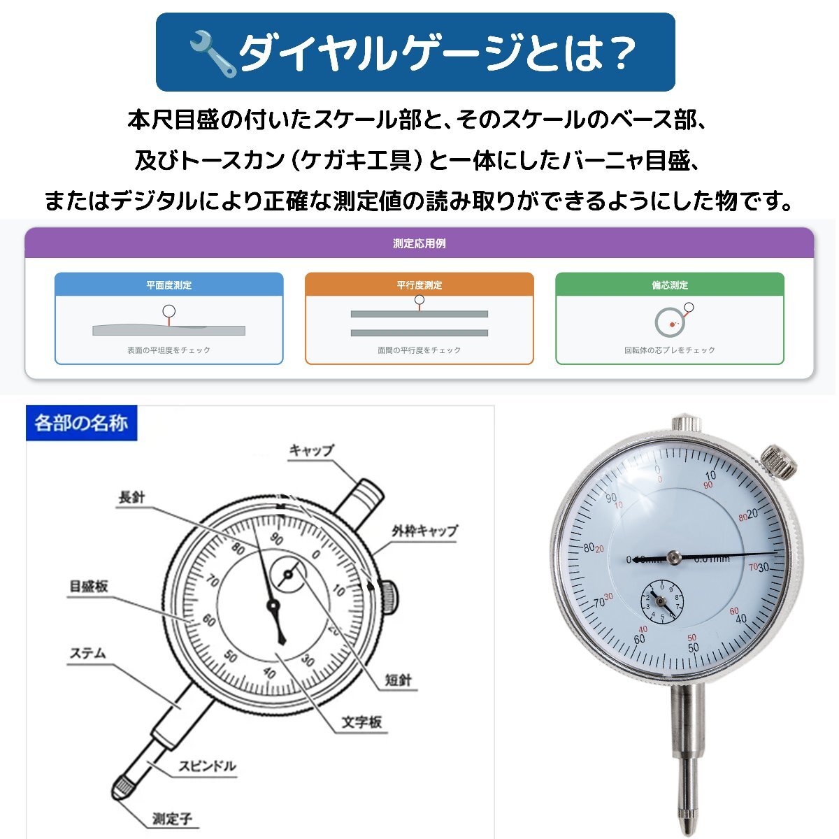 ・ダイヤルゲージ目盛り:0.01mm / 10mm