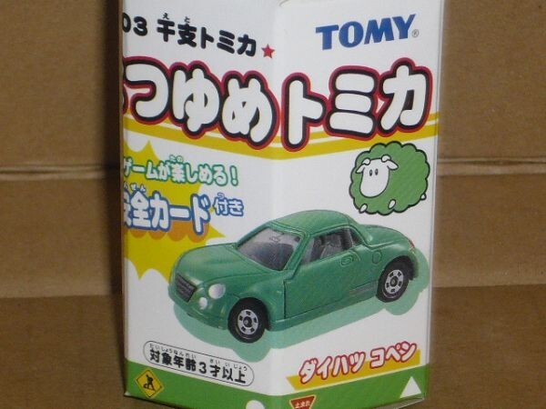 トミカ はつゆめトミカ(2003干支トミカ) ダイハツコペン 緑です。箱が少し傷んでいますので、ご了承の上入札ください。商品の状況は写真でご判断の上、ノークレーム・ノーリターンでお願いします。保証はできませんが、定形外郵便での発送も可能です。