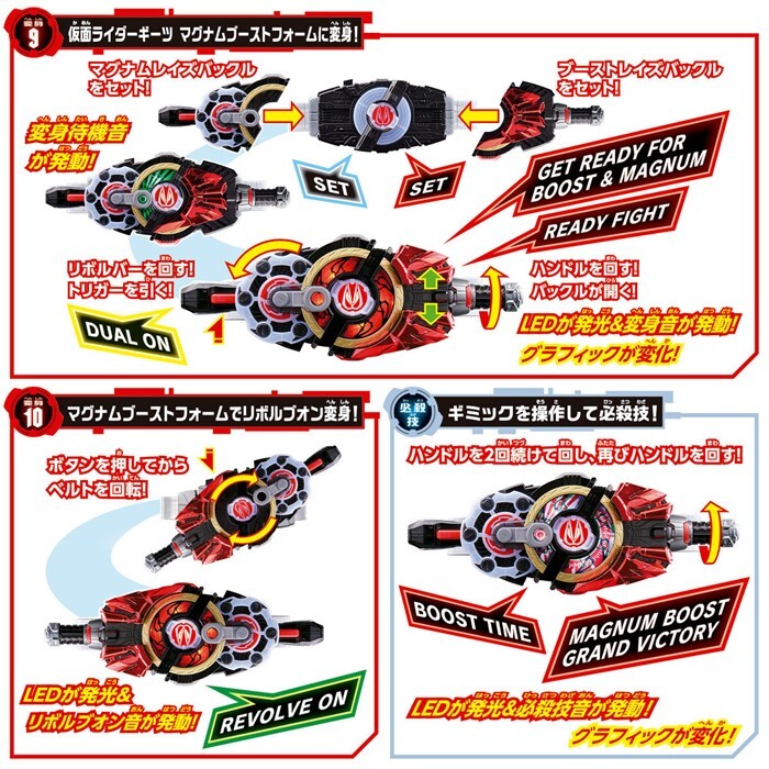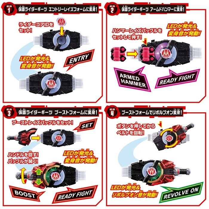 さらにベルト回転ギミックでリボルブオン変身遊びが楽しめるなど、遊び満載の変身ベルトです。