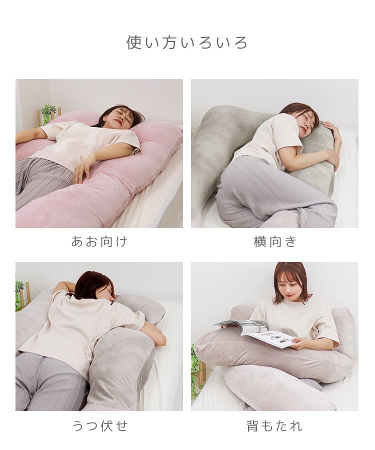 \包み込まれるような極上の寝心地♪/ ふわふわもちもちでやみつきの触り心地。 体にフィット!U字型クッション。 ふんわり包み込まれるような安心感。 体重を分散し、体にかかる負担を軽減します。 左右のクッションが寝返りをスムーズにサポートします。 ■使い方いろいろ 頭・首・肩・腕を支えての仰向け寝や、 横向き・うつ伏せ・背もたれとしてなど どんな使い方も優しくフィットします。 ■妊婦さんにもオススメ! 妊娠中の大きなおなかをサポート。クッションの凹凸が腰にフィット! すっぽり体を包み込み、体を支えてくれるので横向きの姿勢もラクラク♪ 腰にぐるっと巻いて、授乳用まくらとしても使えます! ボリューミーでふわふわな綿を使用。 へたりにくく、長くご使用いただけます。 カバーは洗濯機で丸洗い可能!いつでも清潔♪ ◆こんな方にオススメ ・寝つきが悪い ・肩・首・腰などに負担を感じる ・いびきの大きさが気になる ・おなかの大きい妊婦さん 【商品仕様】 ・カラー:ベージュ ・サイズ:(約)横幅80×長さ140×厚さ18cm ・素材:カバー:ポリエステル100% 詰め物:ポリエステル94%+スパンデックス6% |