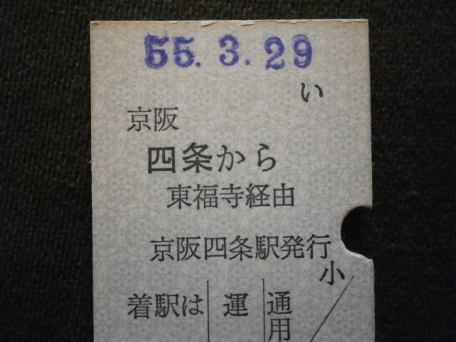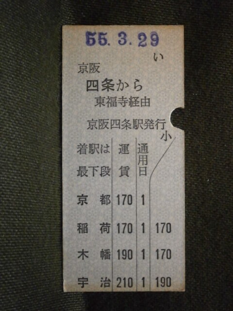 京阪電鉄 京阪四条駅発行、宇治ゆきの切断式乗車券です。