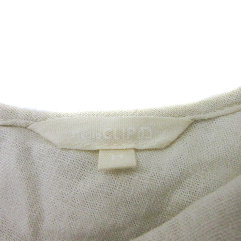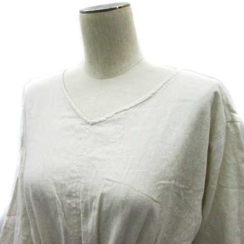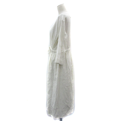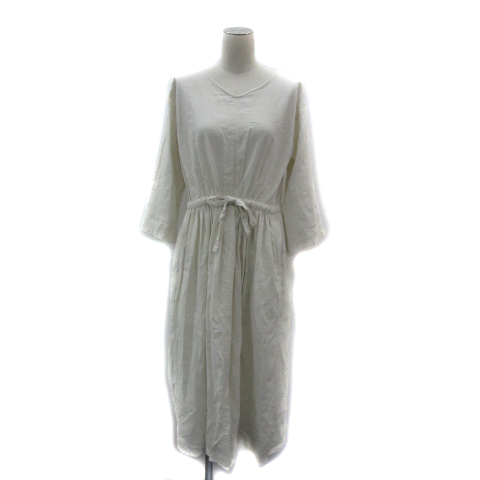 スタディオクリップ Studio Clip ワンピース ロング丈 長袖 Vネック 無地 麻 リネン 麻 リネン M オフホワイト /YS19 レディース