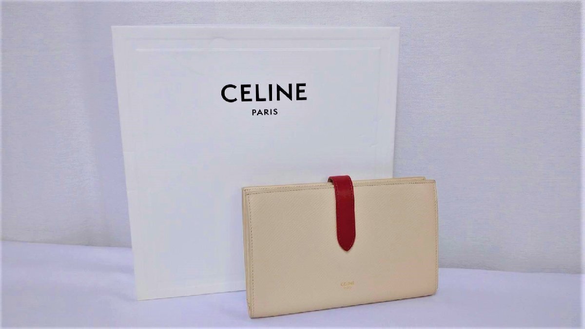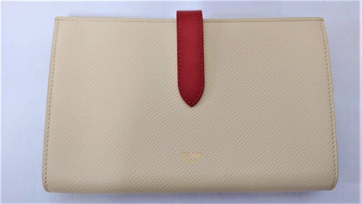 ▽CELINE セリーヌ 二つ折り財布 ストラップ バイカラー ラージ 財布 レディース 長財布 中古▽005912