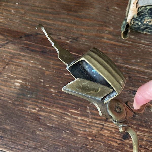 ハサミのような形のろうそく消し(キャンドルスナッファ―)【37-256】火の灯っている部分の芯を四角の部分でハサミの要領でカットして使うそうです。英国らしい何とも優雅な気分にさせてくれるアイテムですね。今は洋風のお仏壇なども増えているので、ひと味違うアイテムを使いたい方におすすめ。福岡市南区の店舗にてお渡しもできますのでお気軽にどうぞ!