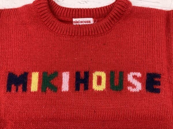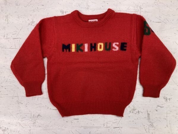 ミキハウス MIKI HOUSE オールド レトロ 90s 子供服 台湾製 古着 ロゴ ジャガード ニット セーター キッズ 5 赤 です。