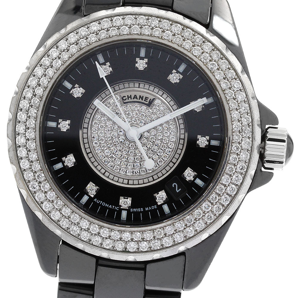 シャネル CHANEL H1757 J12 黒セラミック アフターダイヤベゼル 自動巻き メンズ _908478