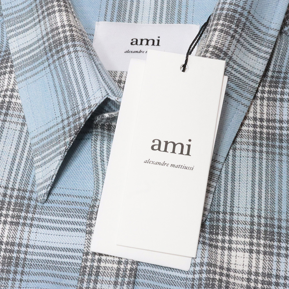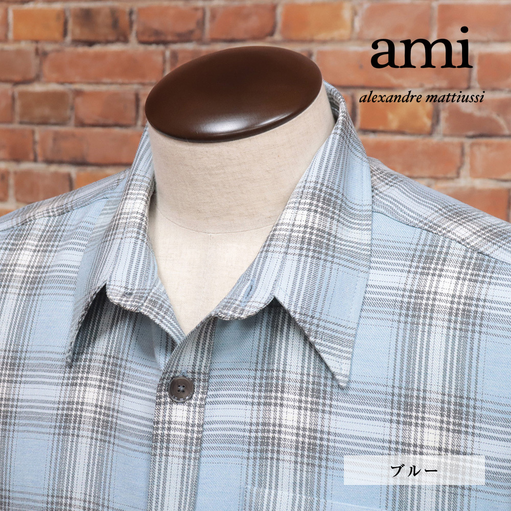 24秋冬/AMI PARIS/Mサイズ/チェック柄シャツ HJK228 VI0010 上質ウール混 オーバーシルエット 長袖 アミ パリス 新品/青/ブルー/mb117/