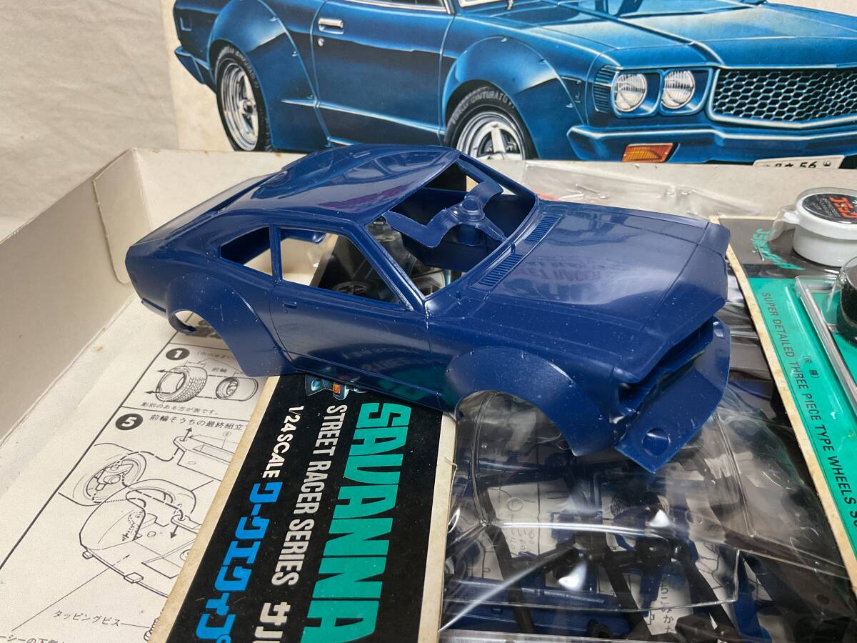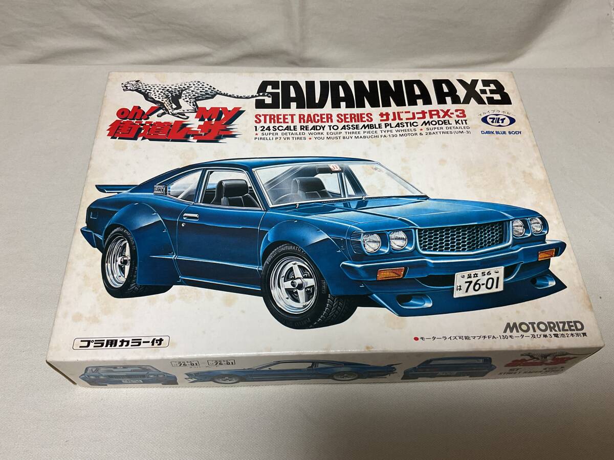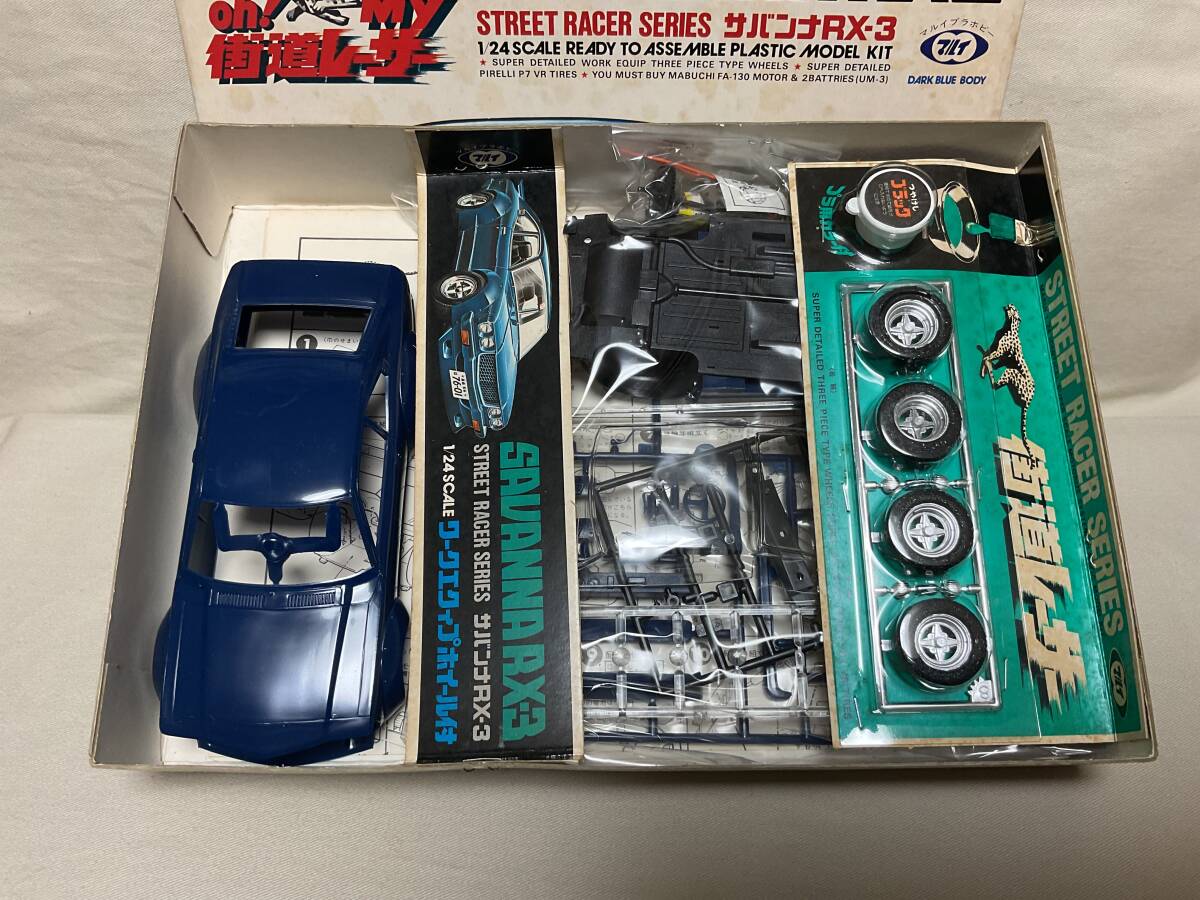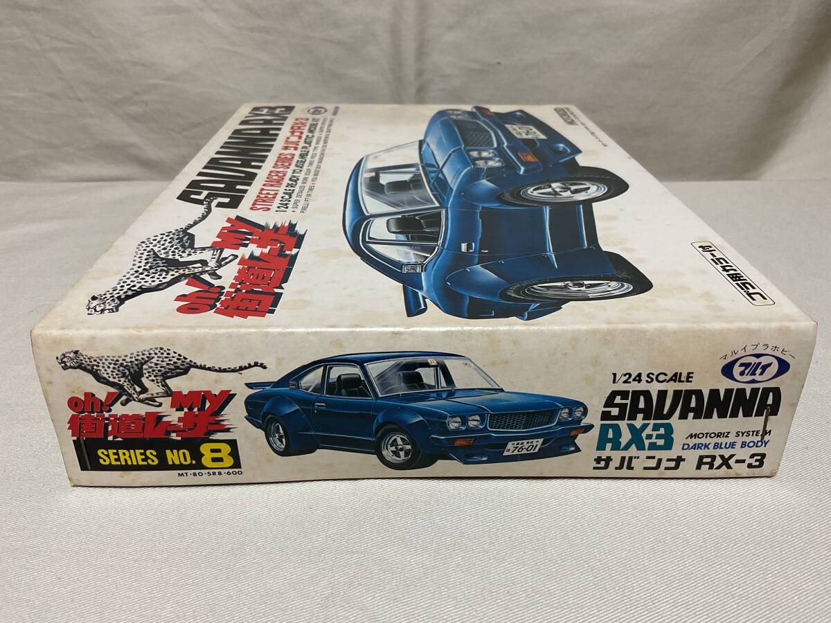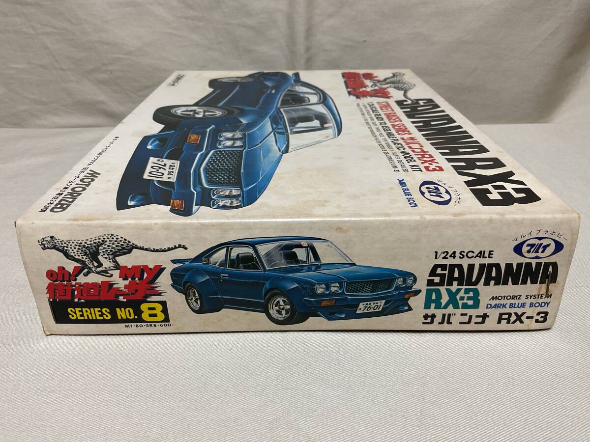 マルイ 1/24 oh! My 街道レーサー NO.8 サバンナRX-3 (ダークブルーボディ) ブリスターパック、部品袋未開封です。タイヤが劣化しているようです。 他にも劣化している部品が有るかもしれませんので、ご承知おきください。 箱には変形、スレ、汚れ、破れ等ありますので、画像で状態をご確認ください。