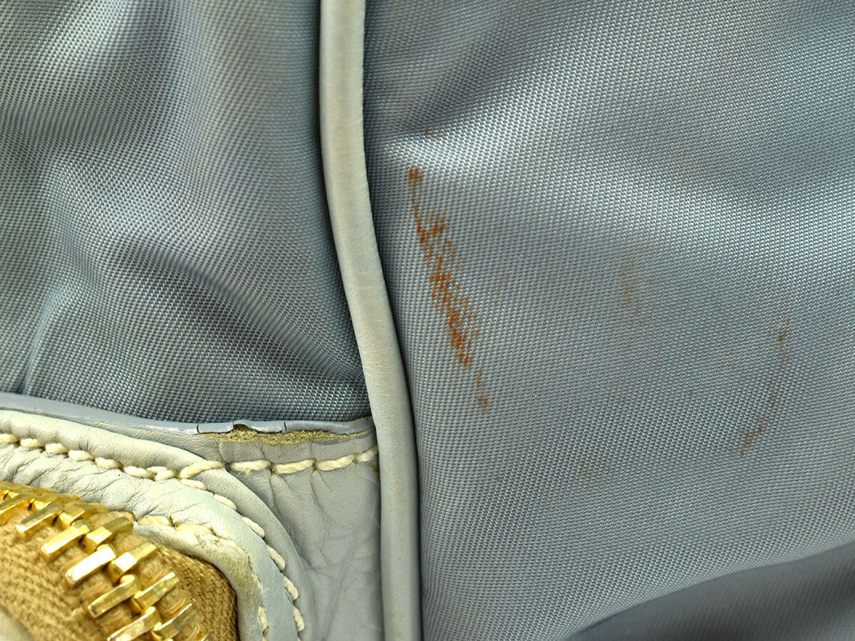 | 外側・内側所々にシミ・変色、持ち手・外側側面付近にインク痕、持ち手に色褪せ・小さな剥がれ、付け根コバに僅かな割れヒビ、金具に点サビ・メッキ剥がれがございます。 使用感が強く窺える商品ですので、ご理解の上ご入札をお願いいたします。 | |