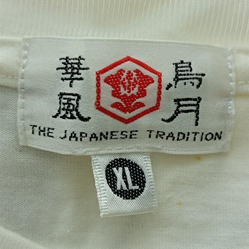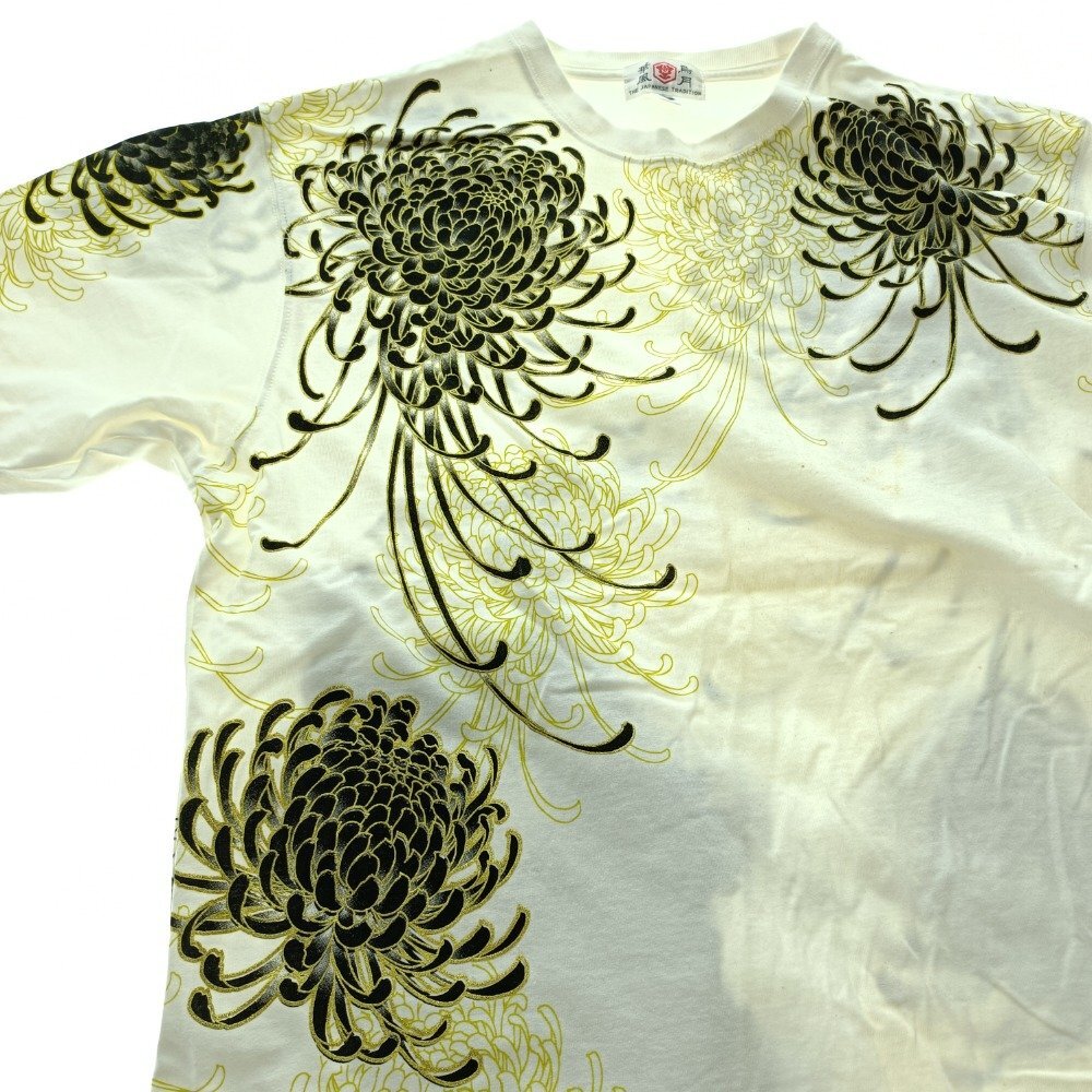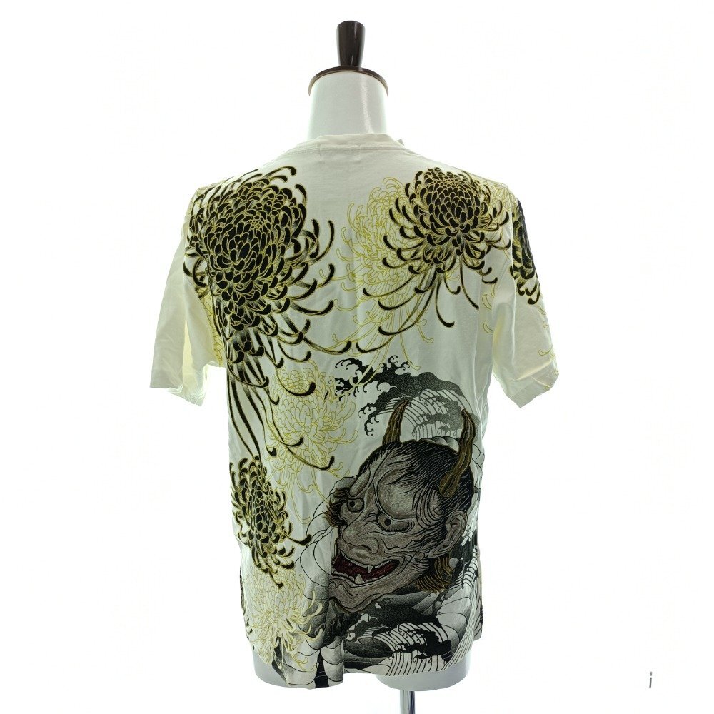 | 華鳥風月 和柄 半袖 クルーネック Tシャツ XLサイズ 白 黄 般若 華 刺繍 丸首 メンズ カジュアル ファッション トップス 現状 中古 |