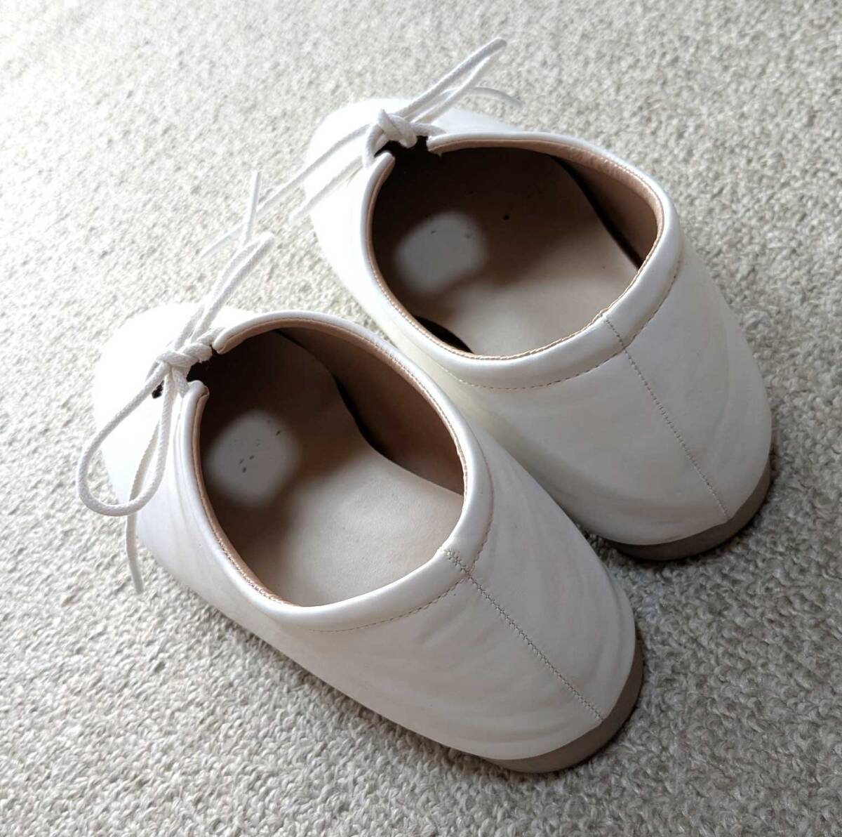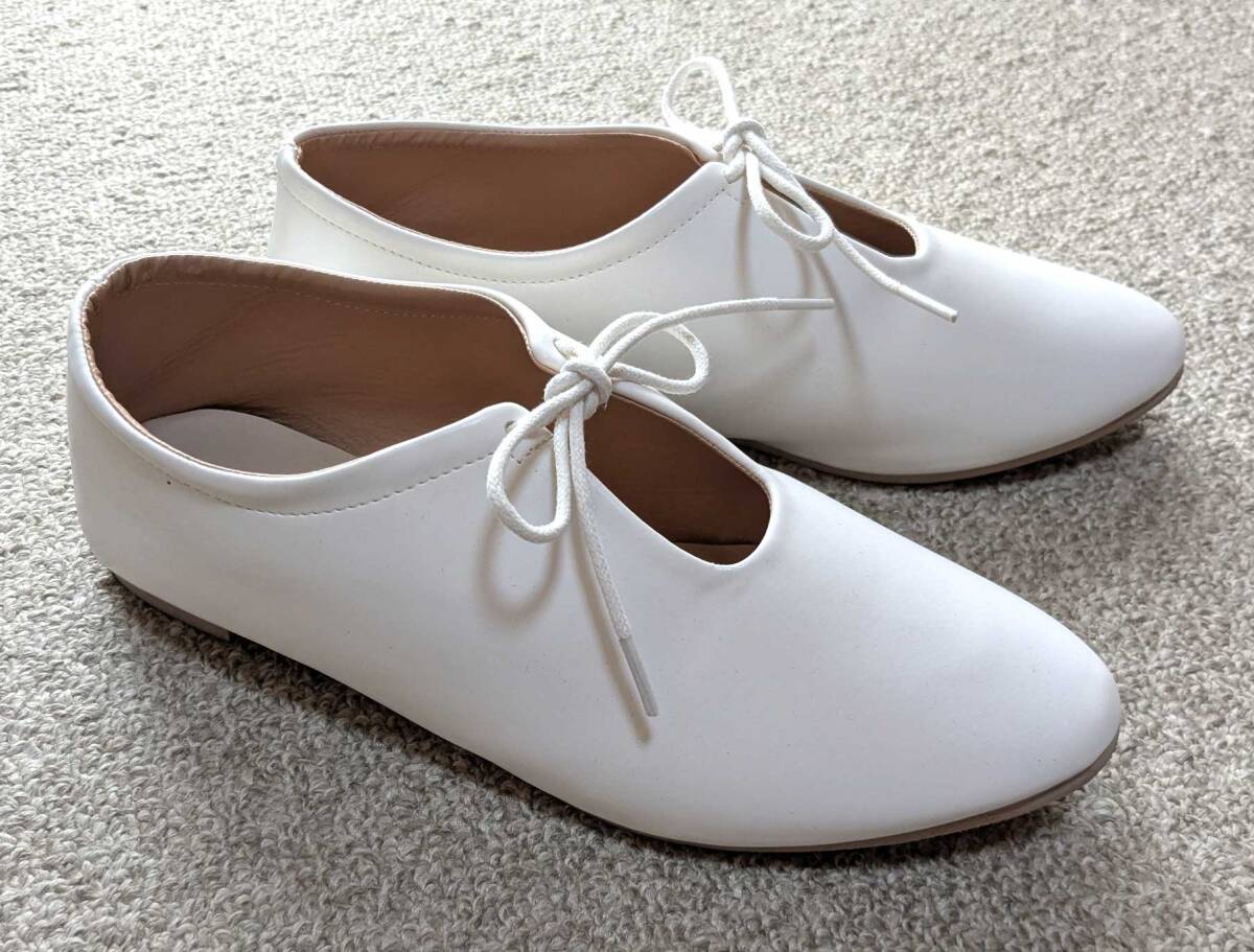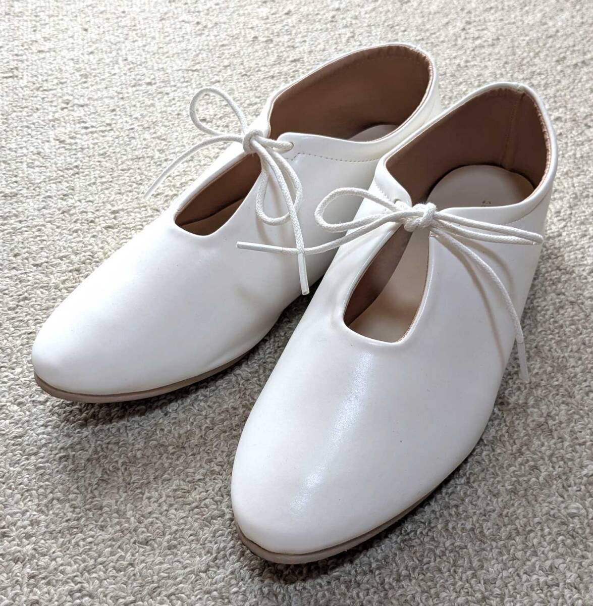 ■is_073 Bleu Bleuet ブルーブルーエ レディース 白 ホワイト ぺたんこ フラット パンプス 靴 Lサイズ 24.0 紐 お洒落 可愛い 美品