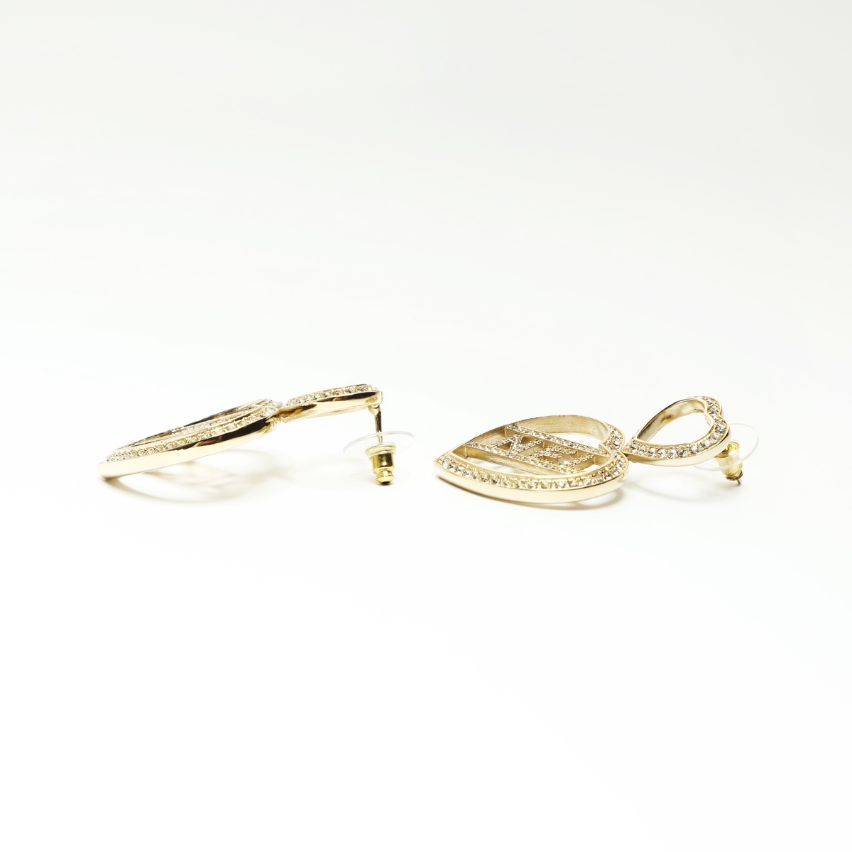 シャネル CHANEL ピアス 23B 2023 ロゴ ハート ラインストーン ゴールド