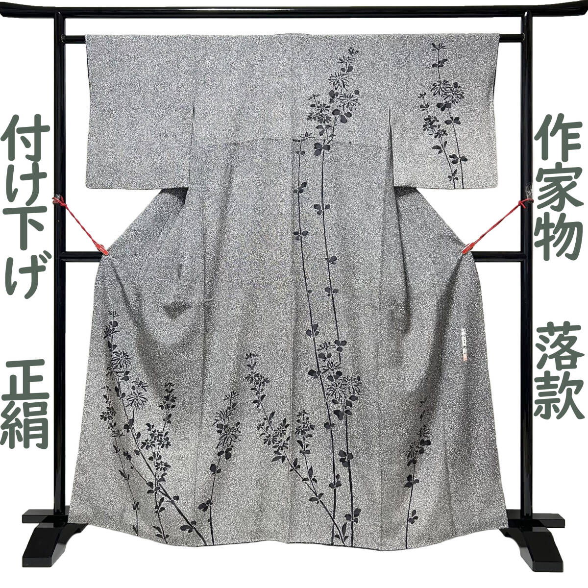 ★着物 付け下げ 川村久太郎 作家物 落款 枝花 セミフォーマル 正絹 グレーブラック Mサイズ 仕立て上がり  送料無料★