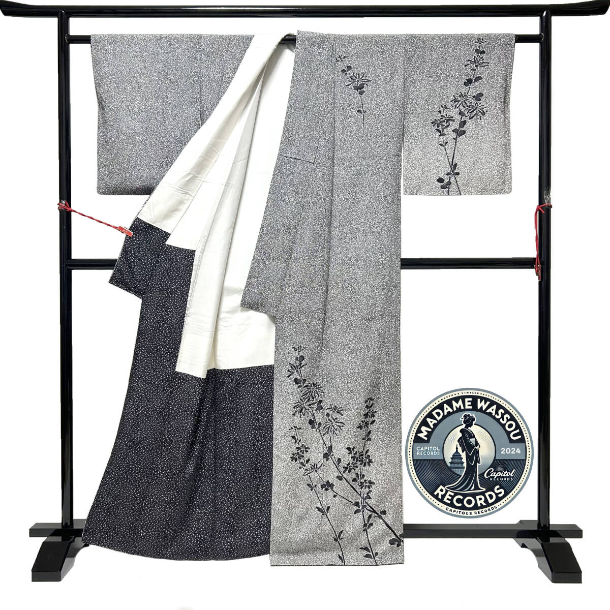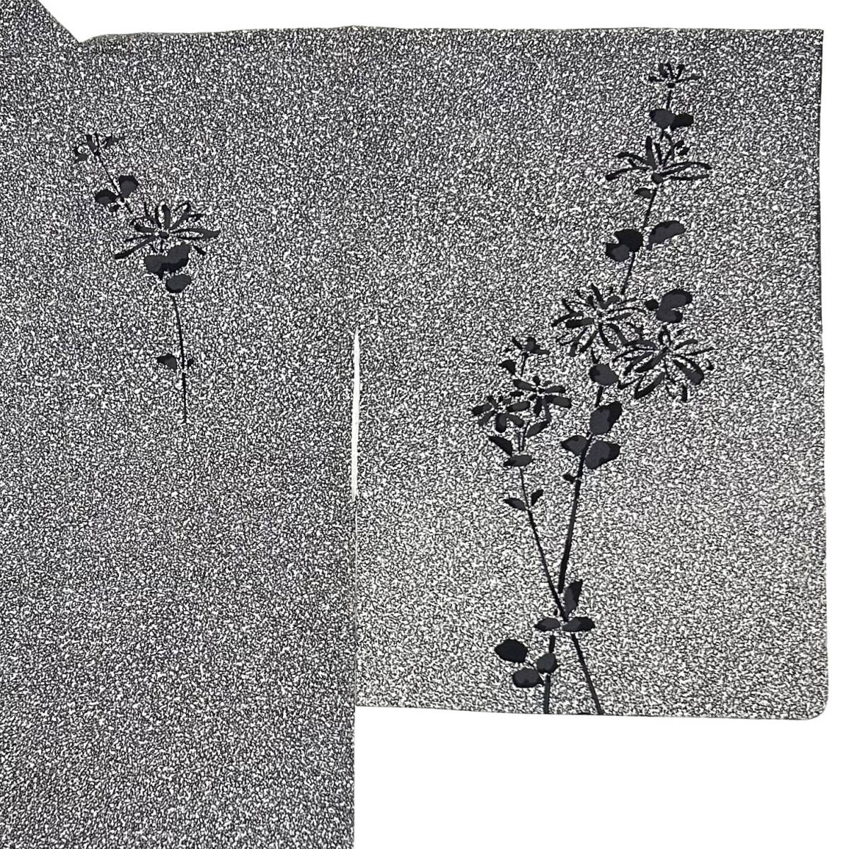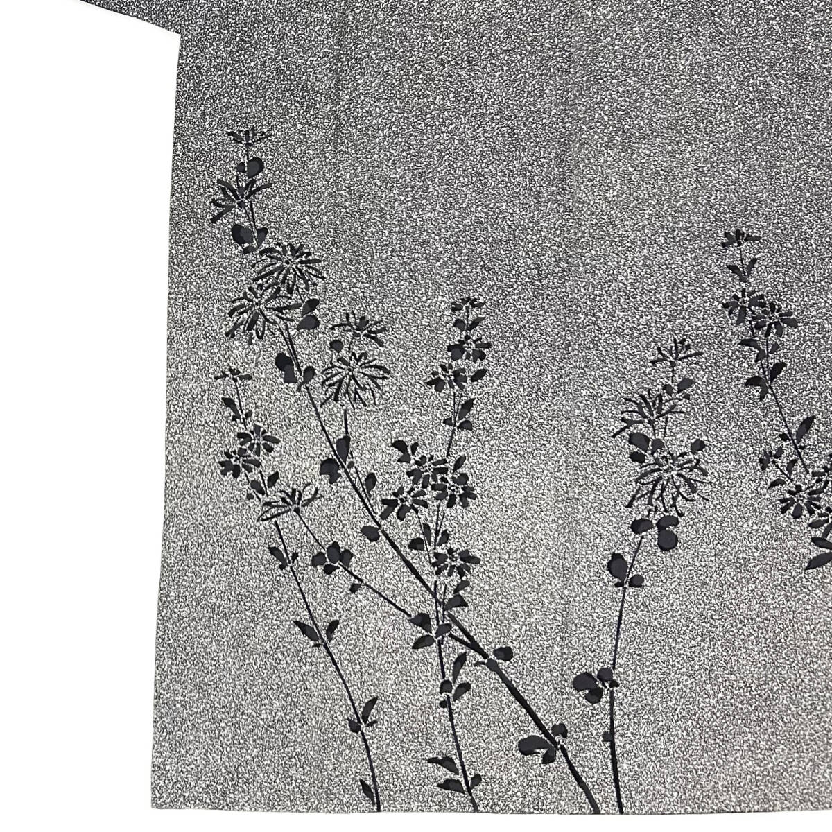 グレーブラックの斑文様の地に、枝花柄が黒色で描かれた大変上質ですばらしいお着物です。どうぞこの機会に是非ともご検討下さい!
