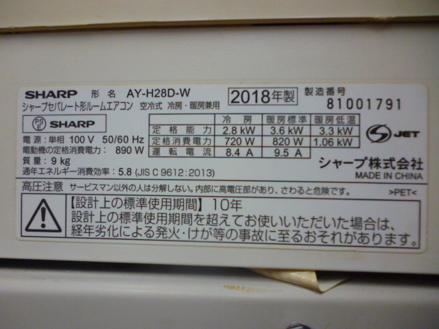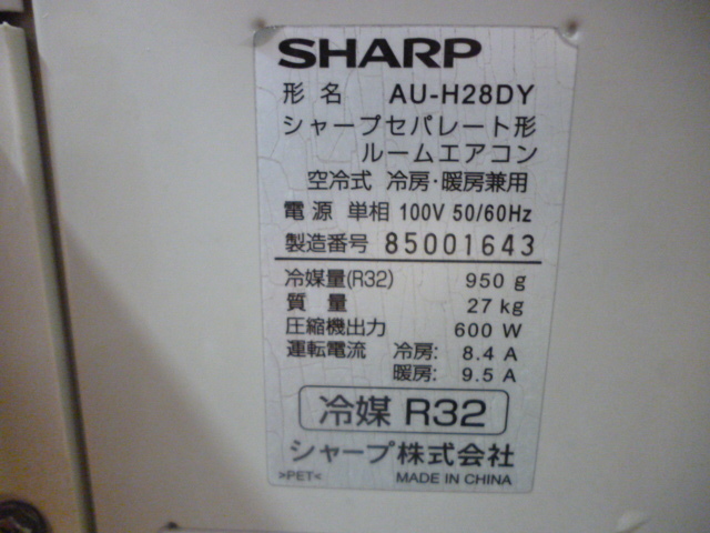 | Q797 シャープ ルームエアコン 主に10畳 AY-H28D-W | |||