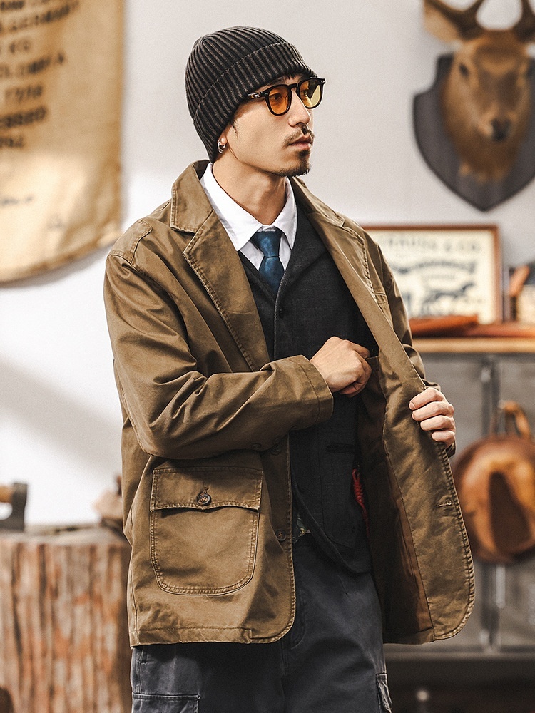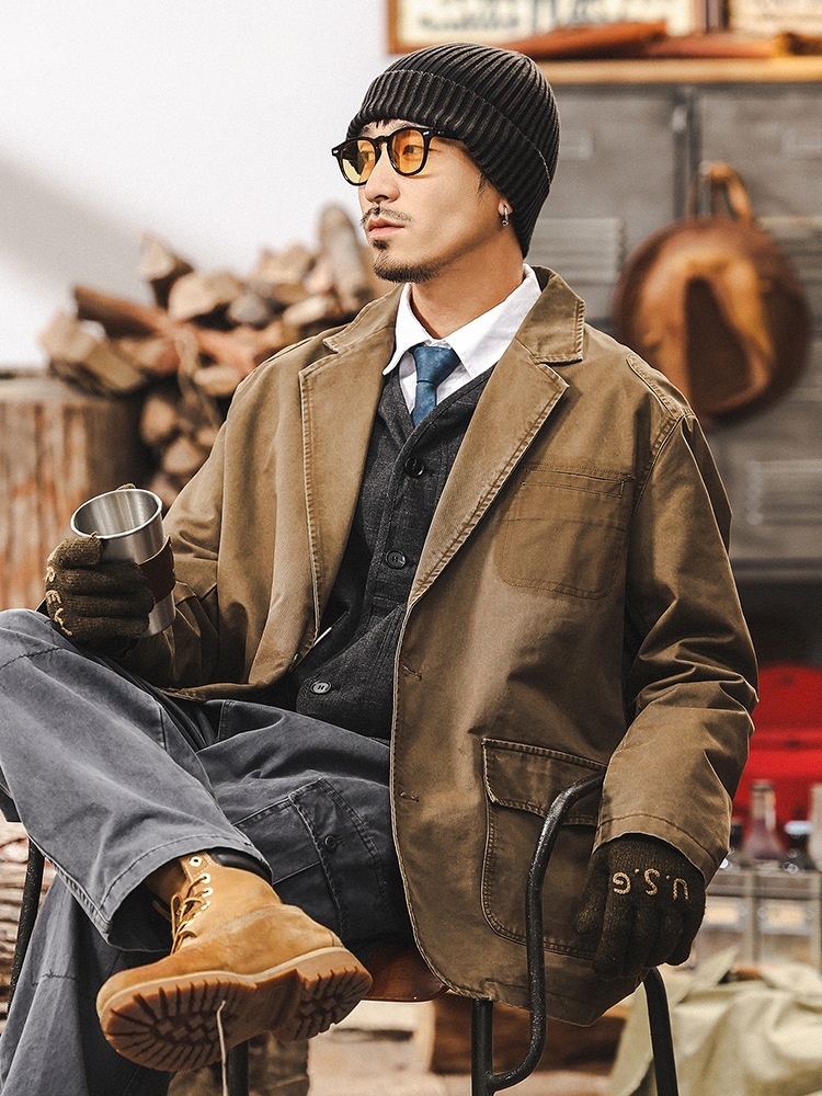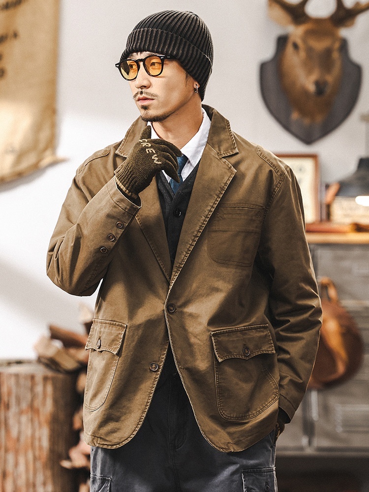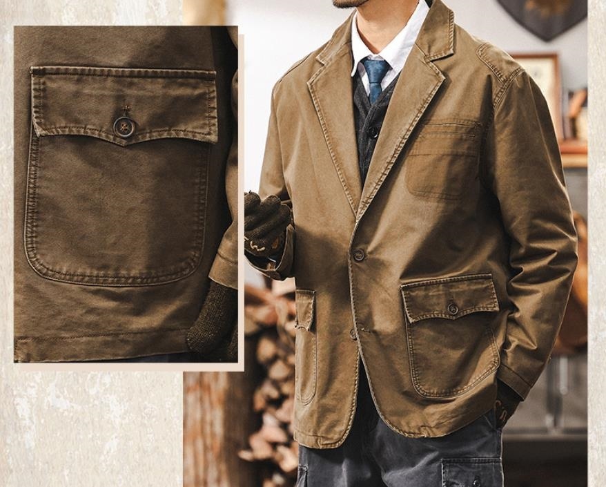 テーラードジャケット メンズ★新品 カジュアルジャケット 紳士服 ブレザー ジャンパー コットン ブルゾン ワークジャケット【C202501161421】珈琲色 XL