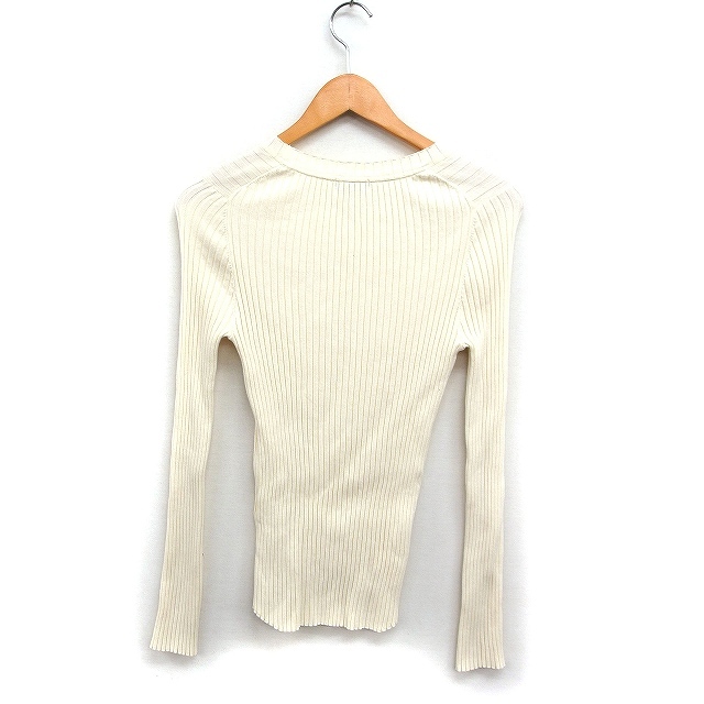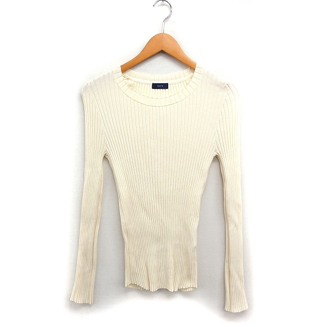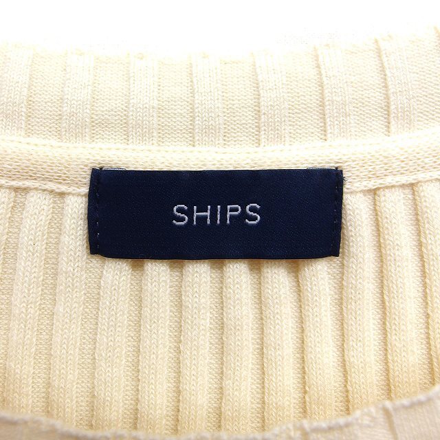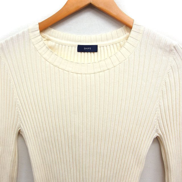 シップス SHIPS リブ カットソー 長袖 丸首 無地 コットン 綿 アイボリー 白 /FT6 レディース