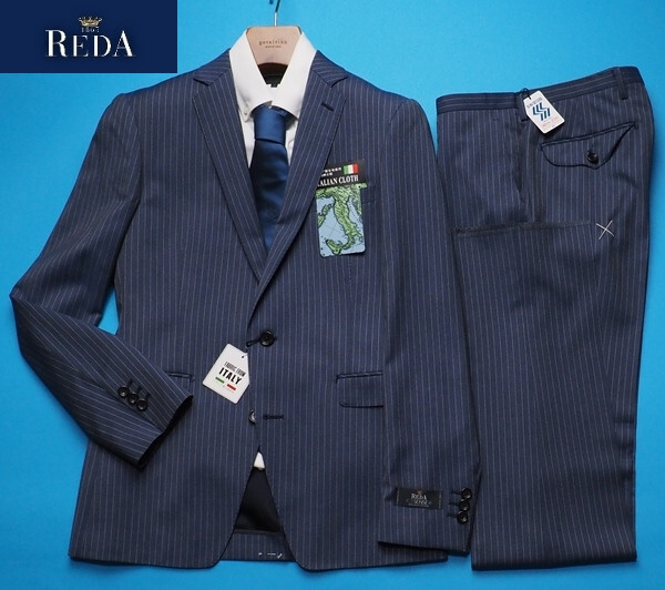 新品9.7万円 大手百貨店扱い 日本製 春夏『REDA ICESENSE 伊製生地』ストライプ スーツYA7青(F) 1701051