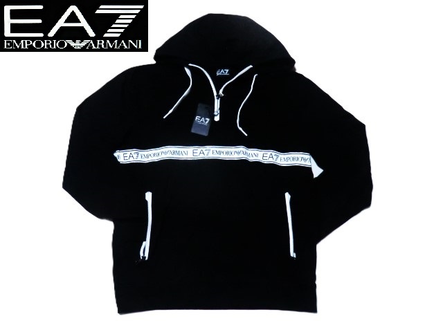 新品! EA7 EMPORIO ARMANI リッチでお洒落!存在感抜群☆3KPM26 ちょいワル大人の今ドキ!格上げ☆お目立ち♪EA7テープロゴパーカー<L> 黒