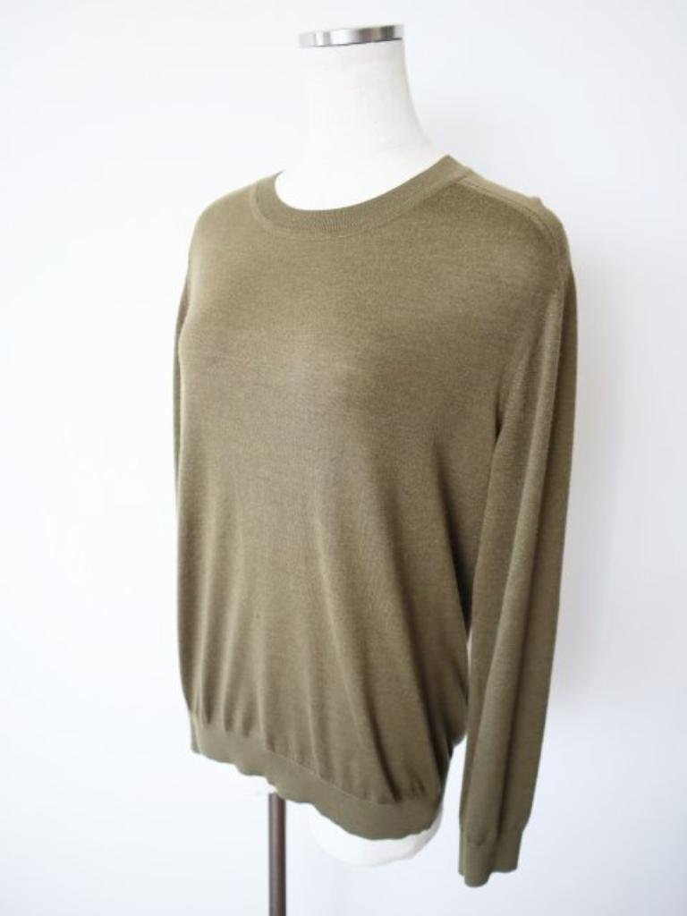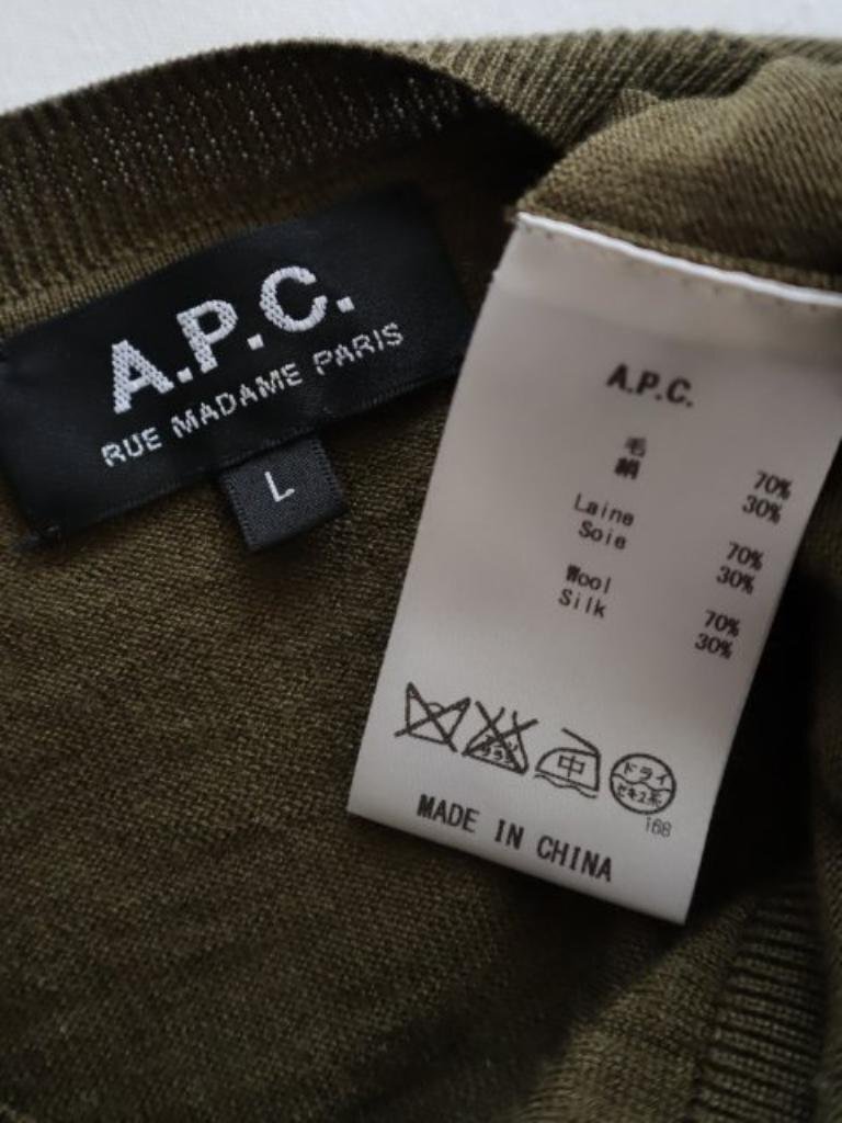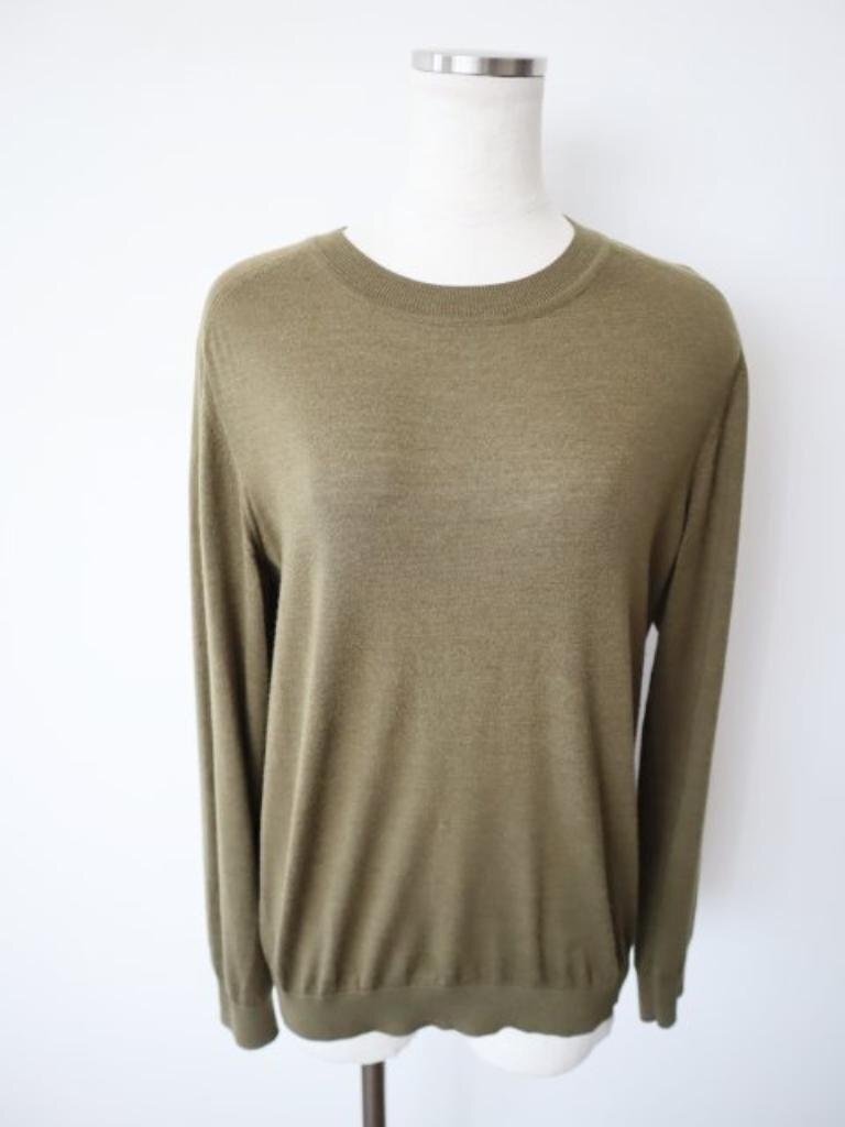【送料込】A.P.C. アーペーセー ニット Lサイズ 緑系カーキ シルク混 ウール 無地 クルーネック レディース おうちで洗える s6459162