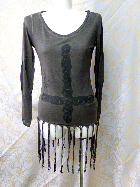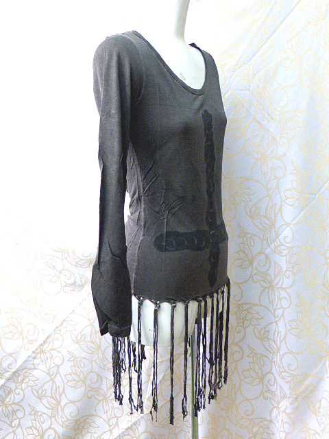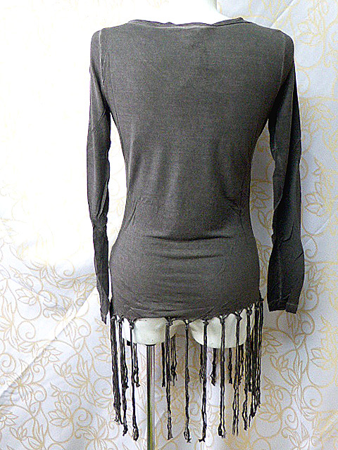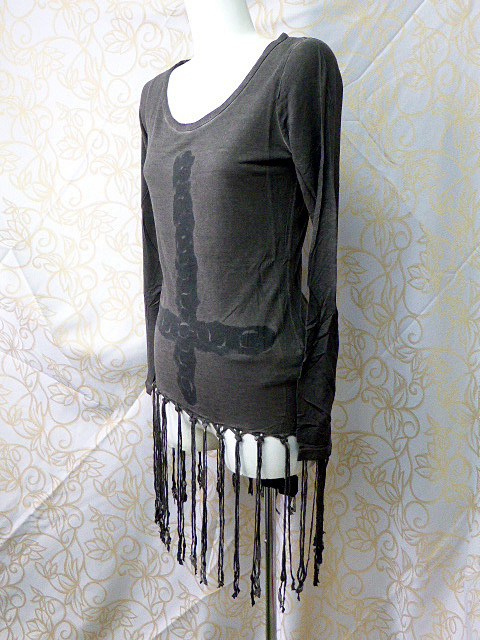 ahno46NO3 イタリア製 MAT&STEP フリンジ付き長袖カットソー 濃いグレー/M-L・251026