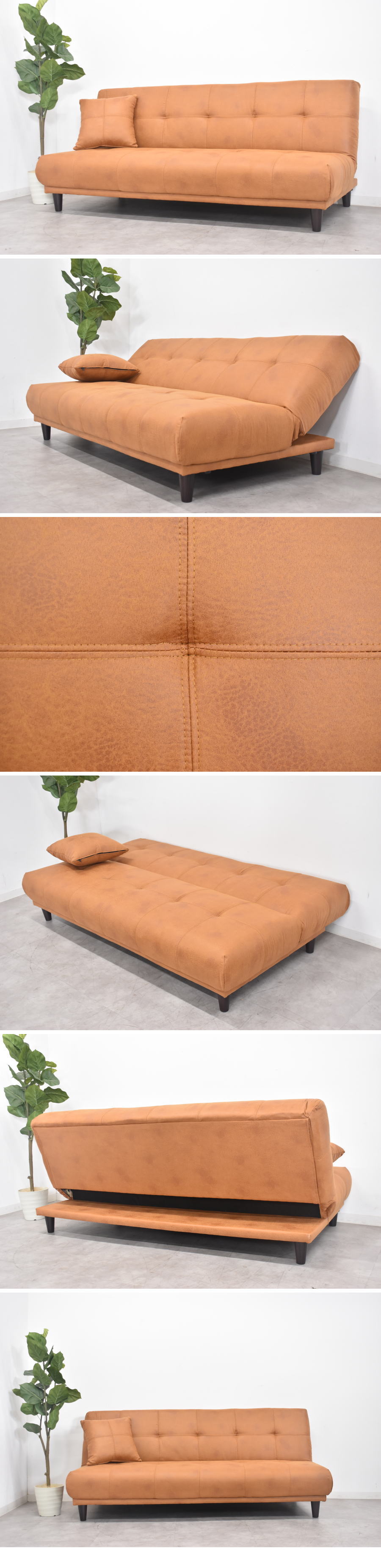 レザーファブリック 布製 リクライニング ソファーベッドです。 新素材ファブリックPVCは合皮にも似たような素材で、布に近い感覚になります。 耐摩耗に優れ、耐久性もありますので長くご使用いただけます。 座面内部にはウレタンフォーム&Sバネになり適度な反発があります。 季節を問わず快適にご使用いただける点がが最大の利点になります。 急なお客様にも重宝するソファーベッドです。 |
