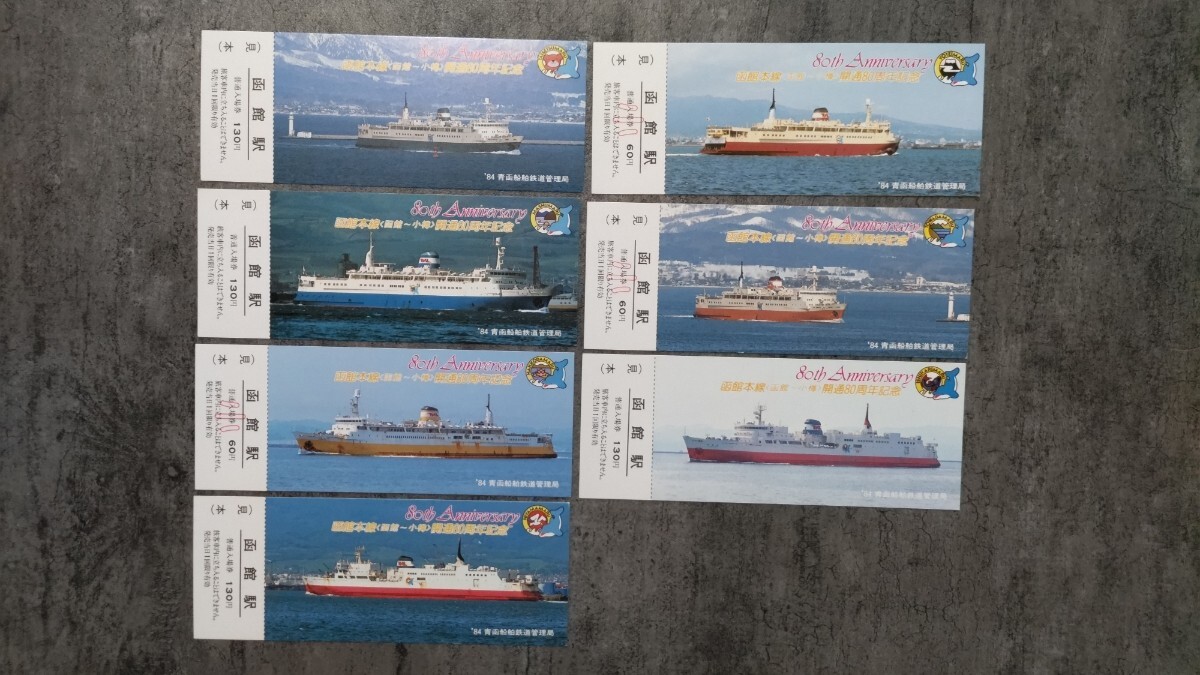 函館本線〈函館~小樽〉開通80周年記念・入場券(青函連絡船)の7枚です。