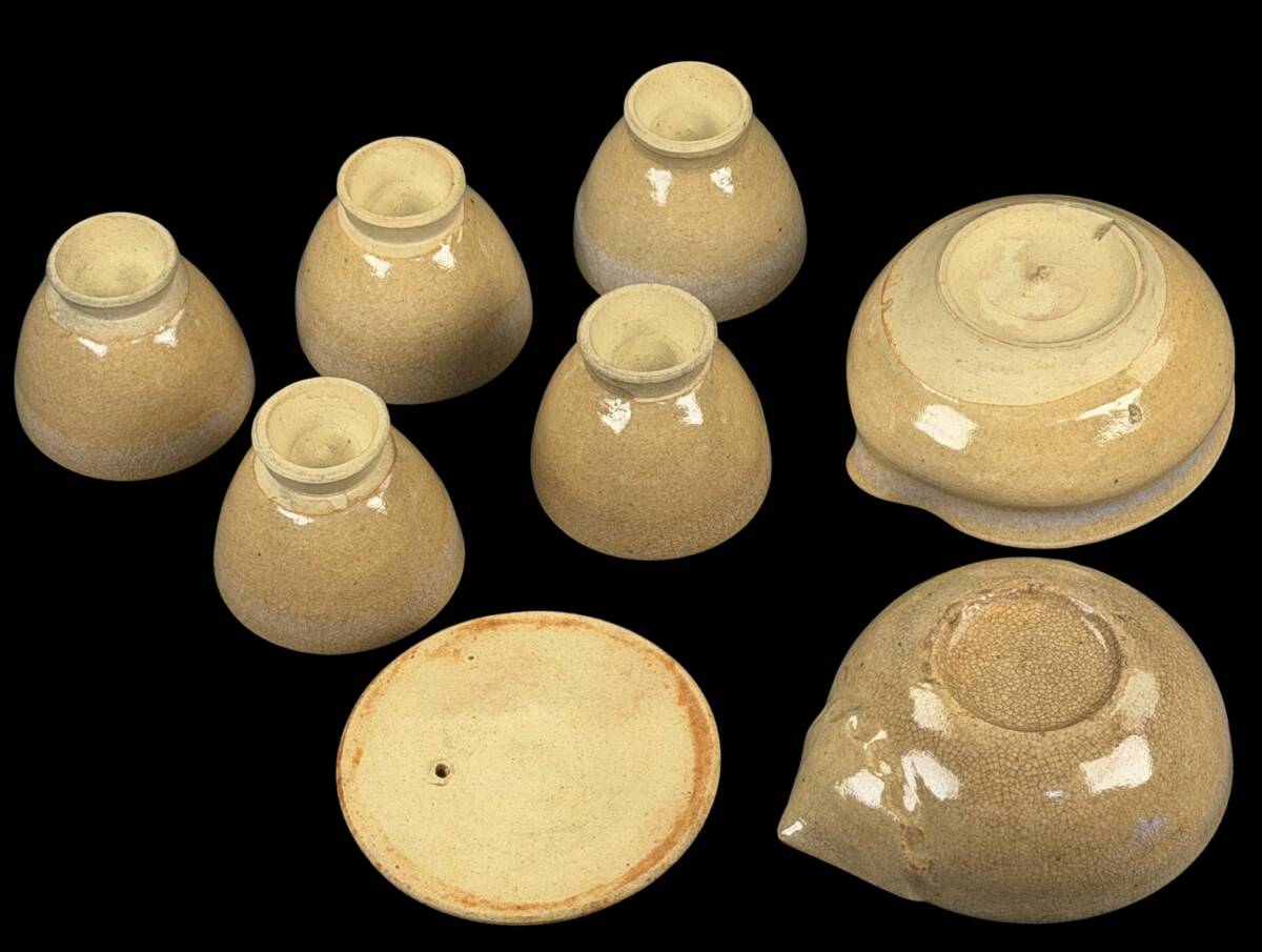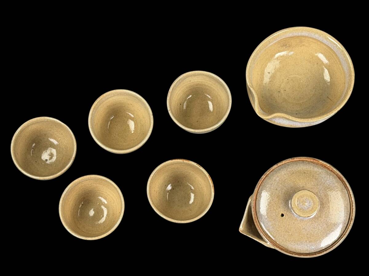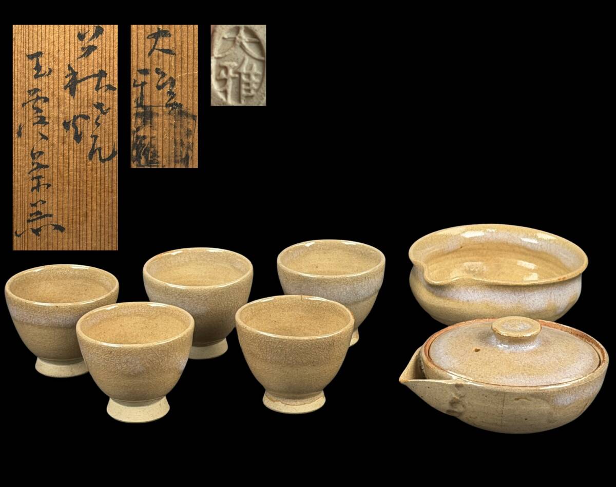 【忠古堂】萩焼 大雅 煎茶器 一式 茶器セット 共箱 煎茶道具 湯冷 宝瓶 急須 湯呑5客 在銘 m-141