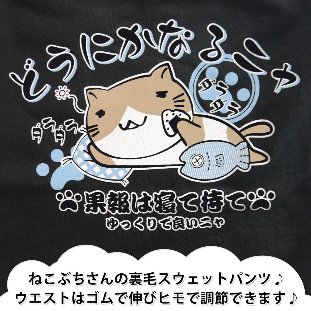 正規店仕入れの新品未使用品です ポリエステル素材で、吸汗速乾に優れます ねこぶちさんの裏毛スウェットパンツ ウエストはゴムで伸びヒモで調節できます |