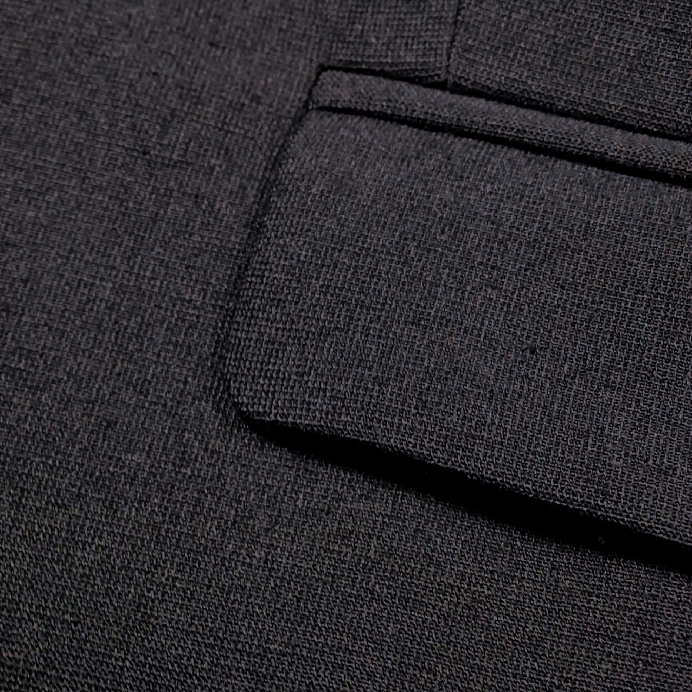 春夏 ジャケット 黒 XS ポリエステル リネン コットン ストレッチ テーラードジャケット 麻混 綿混