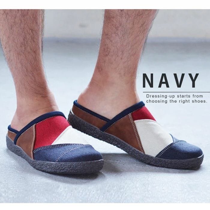 新品■24.5~25cm サボサンダル メンズ スリッポン クロッグ 軽量 靴 着脱簡単 トリコ パッチワーク 屈曲性 スリッパ デニム【エコ配送】