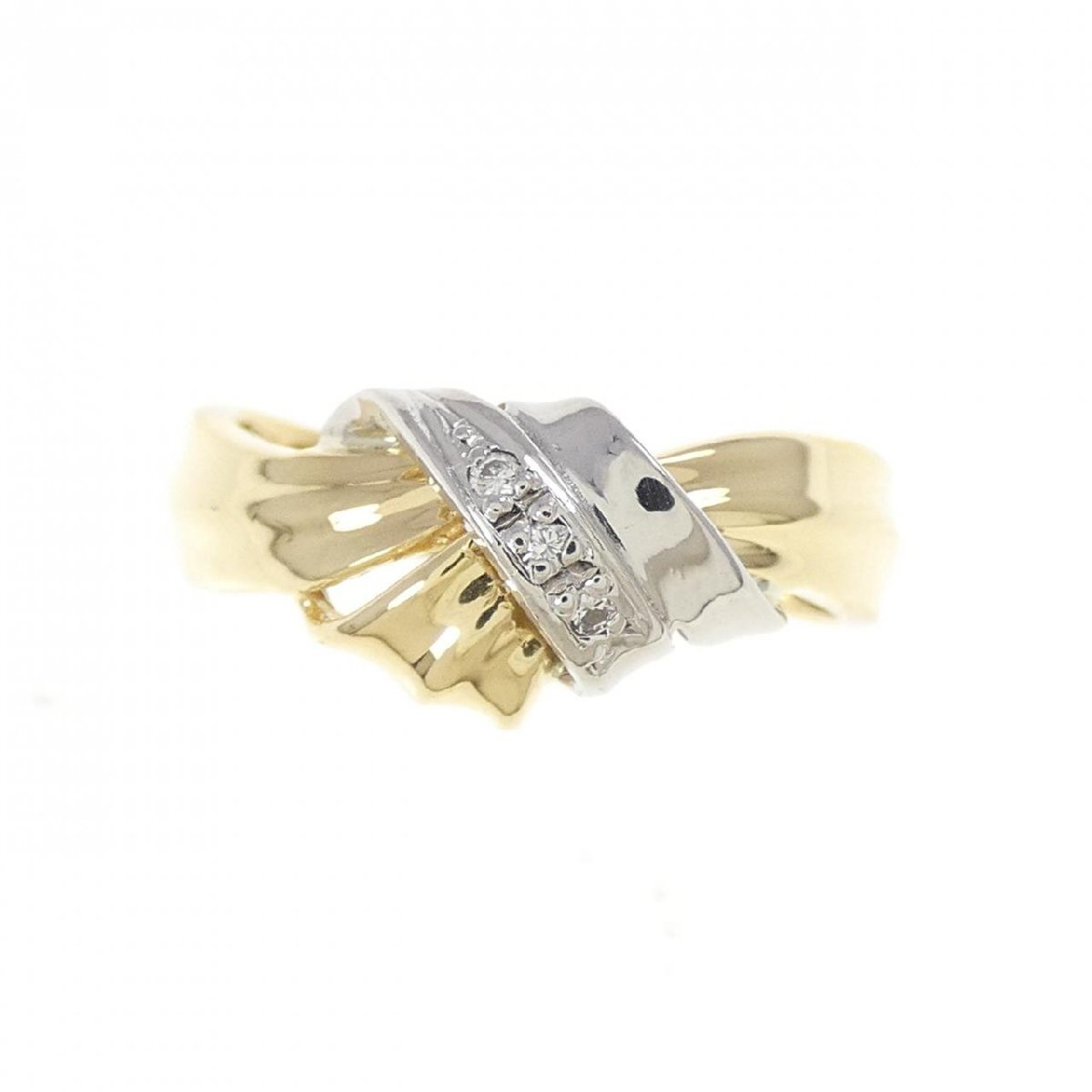 イエローゴールドとプラチナの優美な曲線が絡み合う、モダンなバイカラーデザイン。小さなダイヤモンドのきらめきが、指元に洗練された印象を与えます。