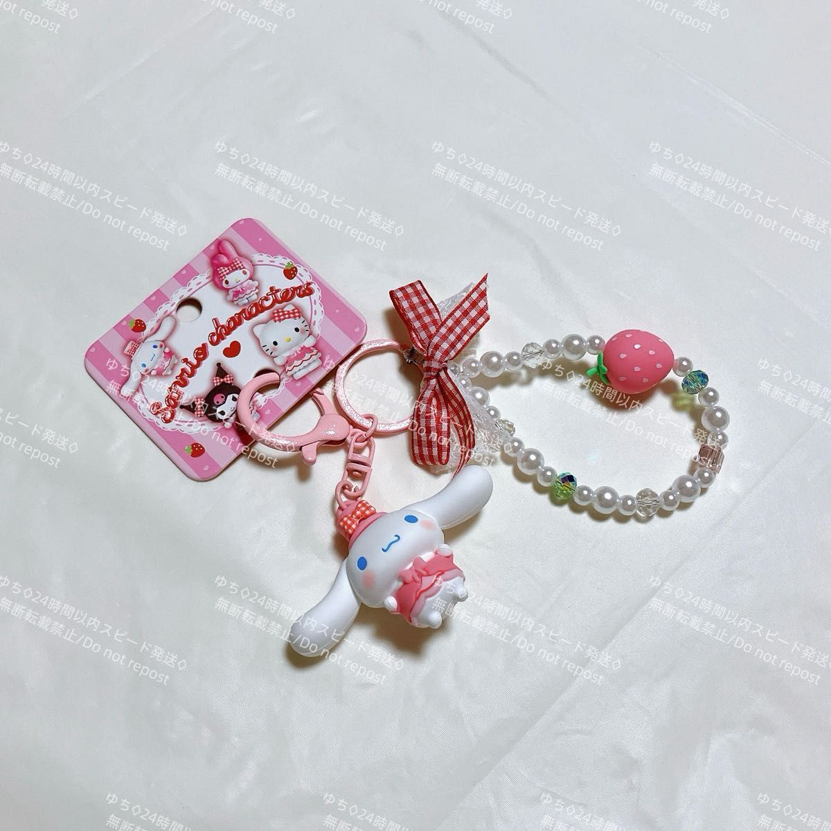 海外限定 サンリオ イチゴ キーホルダー ストラップ チャーム バッグチャーム キーリング 可愛い シナモロール