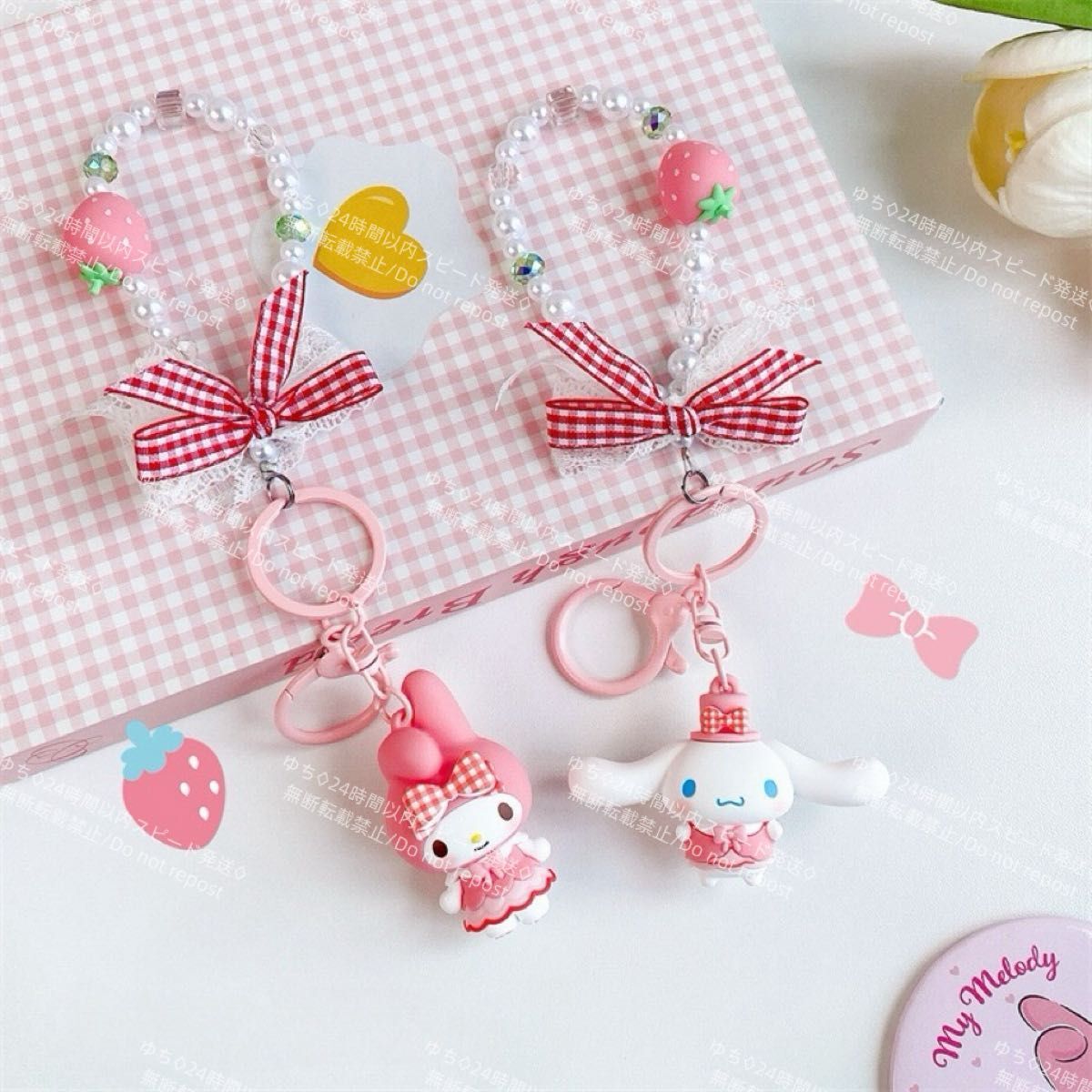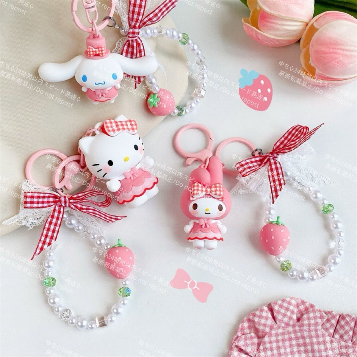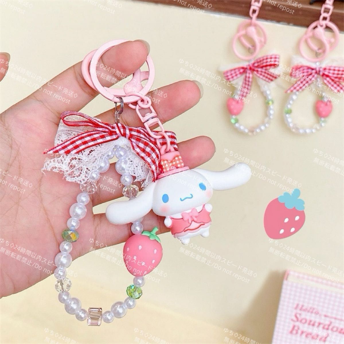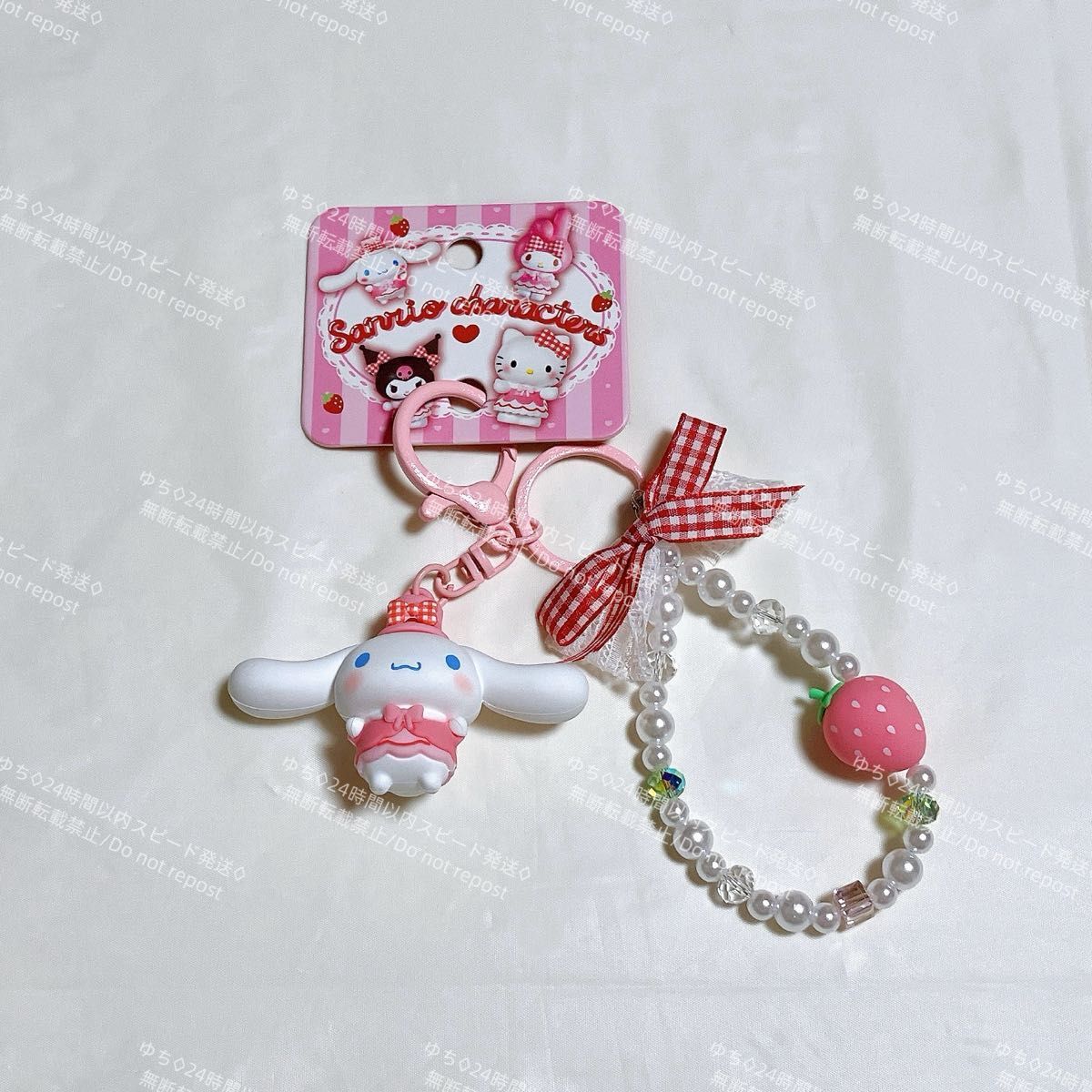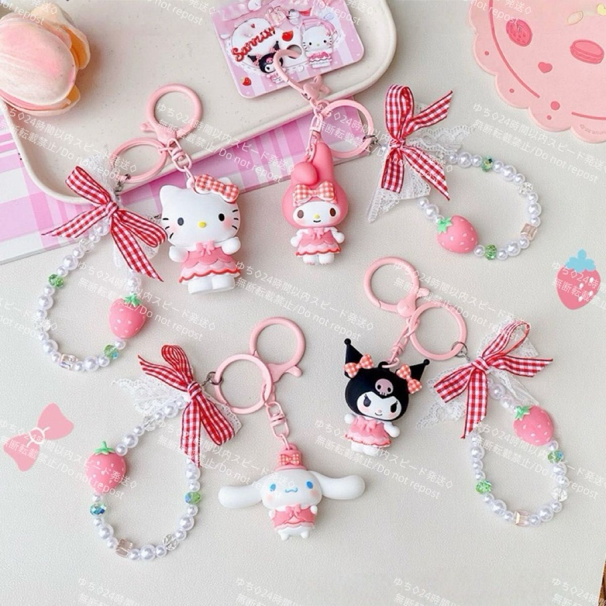 海外限定 サンリオ イチゴ キーホルダー ストラップ チャーム バッグチャーム キーリング 可愛い シナモロール