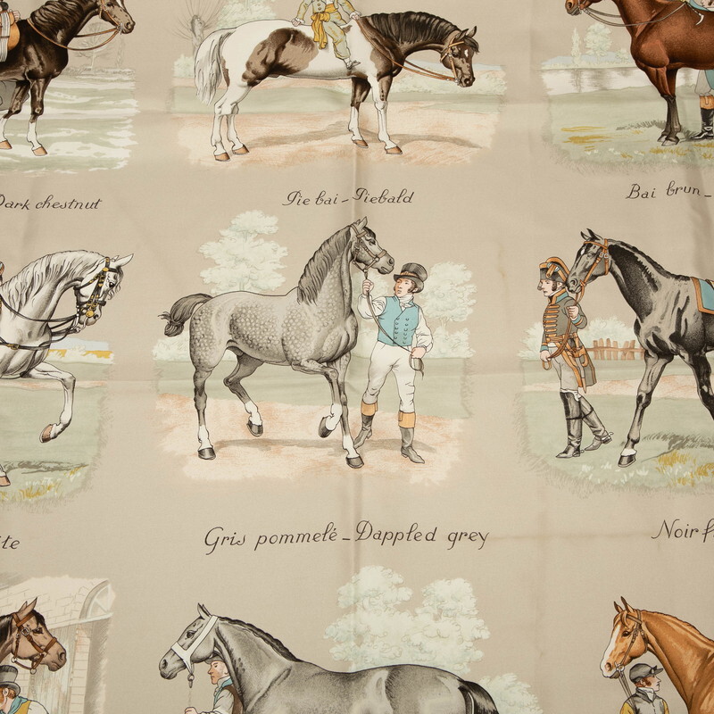 エルメス カレ90 LES ROBES 馬の毛色 スカーフ ワインレッド ベージュ マルチカラー シルク レディース HERMES 【中古】