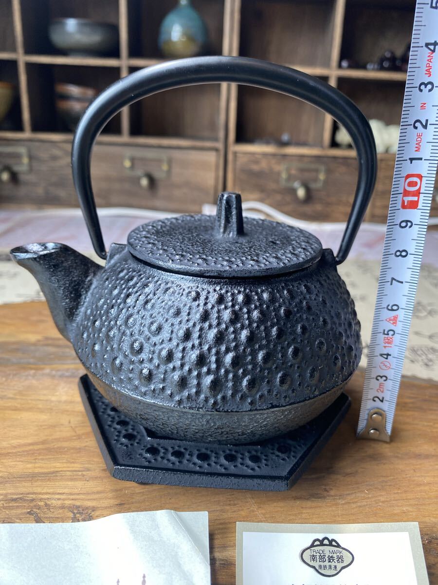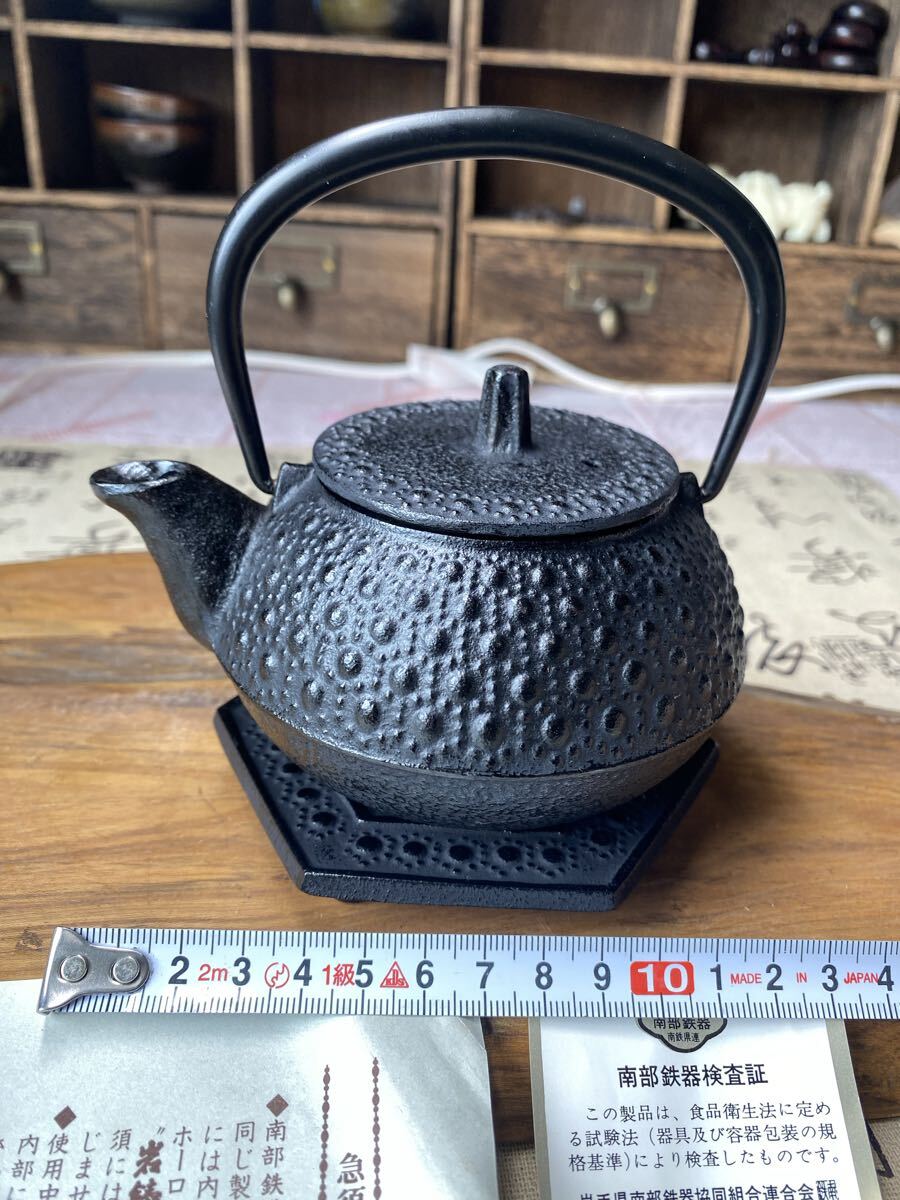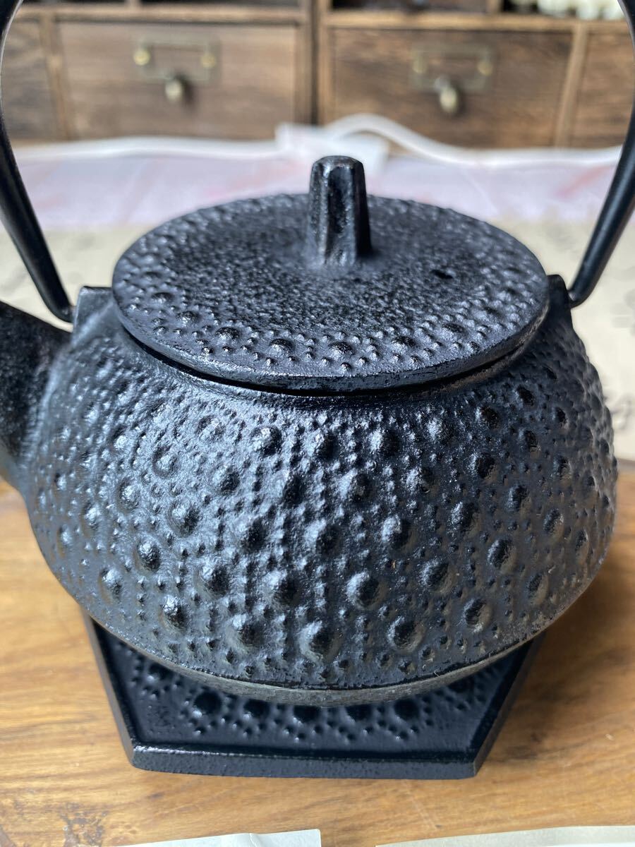日本製 未使用 亀甲模様 鉄瓶 急須 南部鉄器 茶道具茶器 金属工芸 鉄器 アンティーク 鉄製 煎茶道具 鉄器 南部鉄瓶 花台付