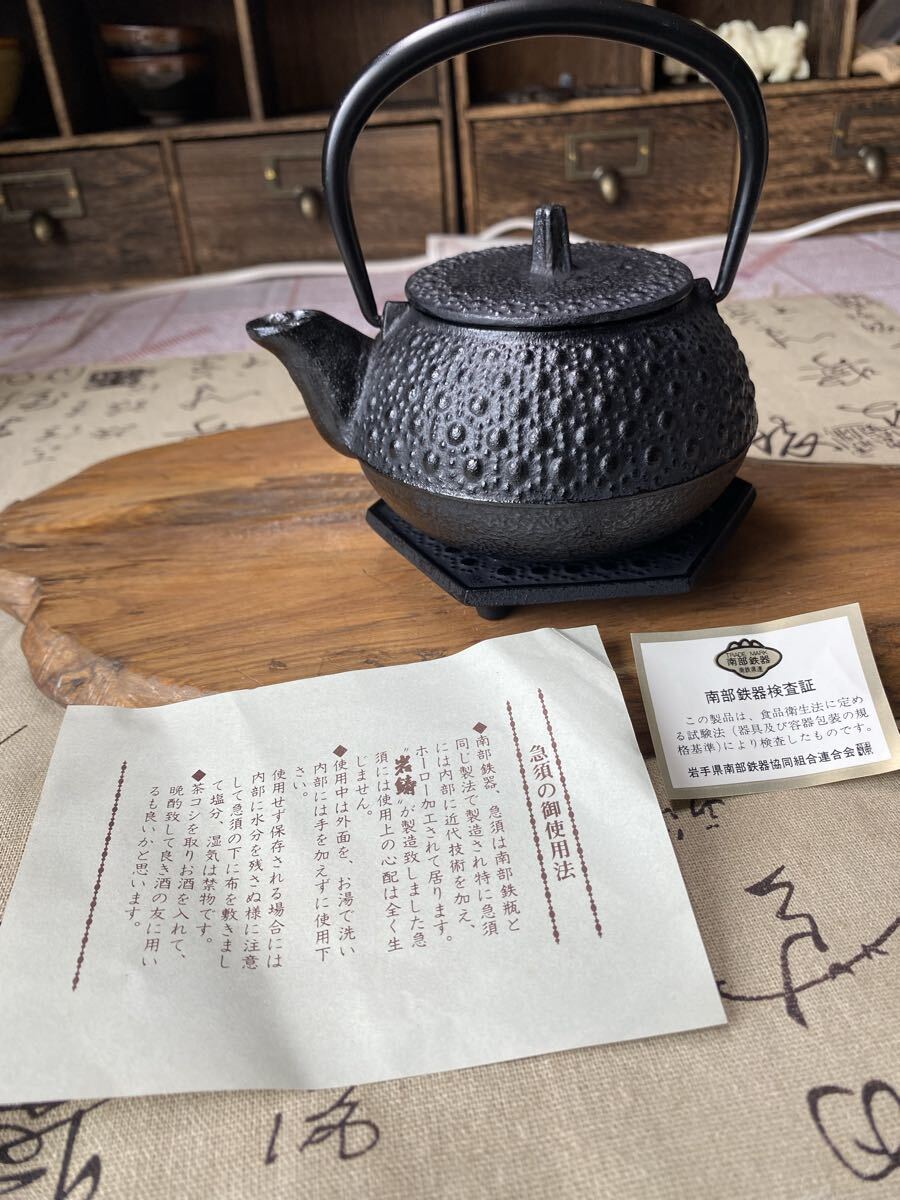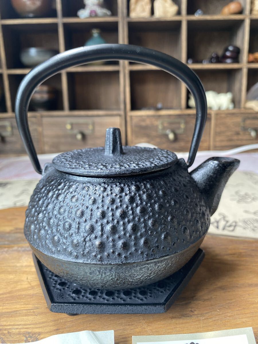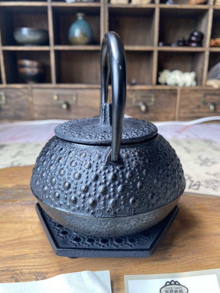 日本製 未使用 亀甲模様 鉄瓶 急須 南部鉄器 茶道具茶器 金属工芸 鉄器 アンティーク 鉄製 煎茶道具 鉄器 南部鉄瓶 花台付