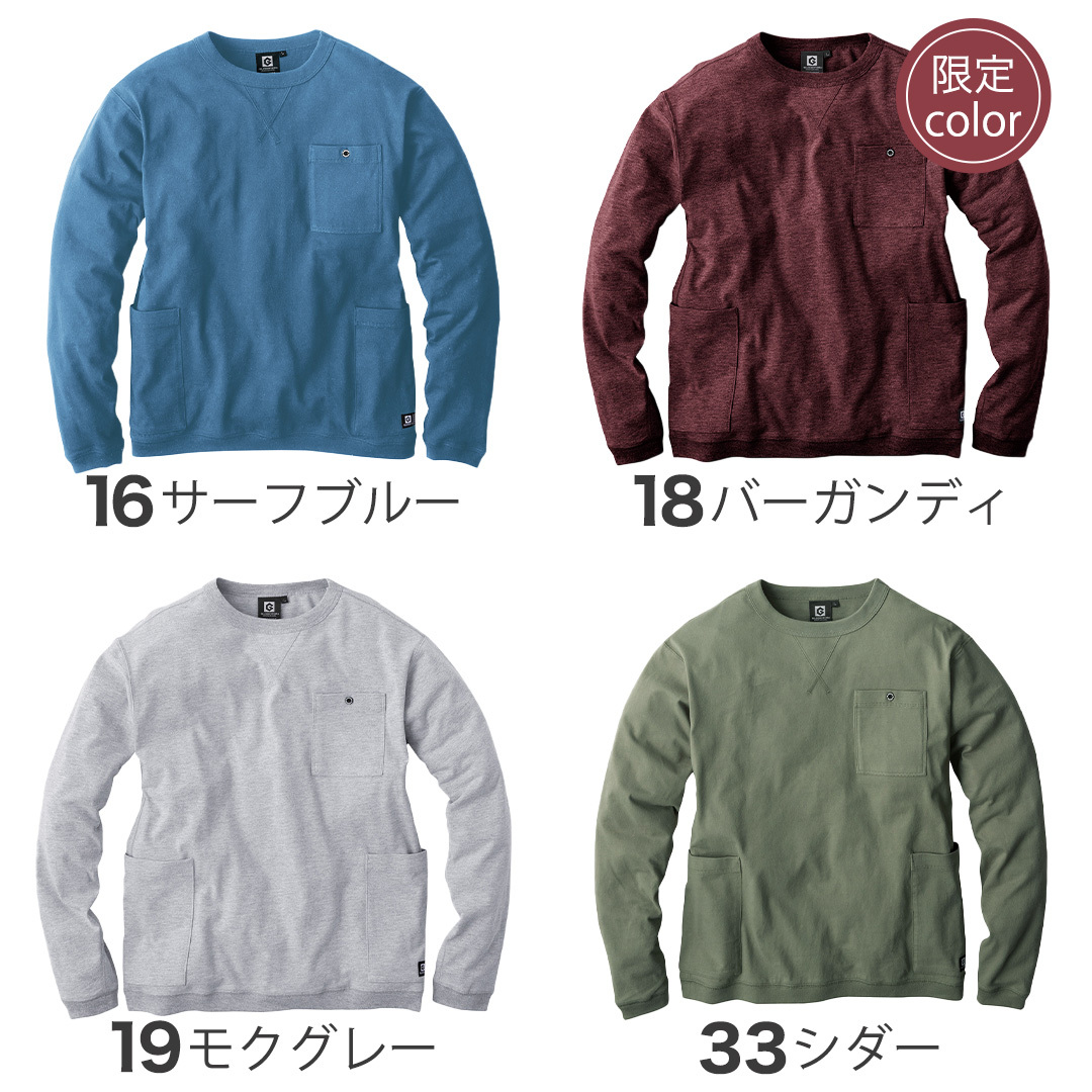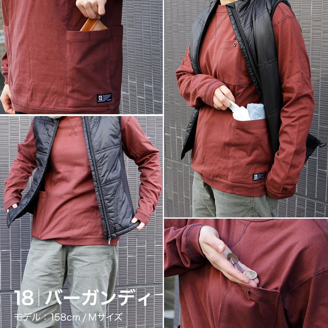 長袖 Tシャツ 5つのポケット (バーガンディ/S) ジャケット対応 ロンT 丸首 ビジネス カジュアル ビジカジ オフィス メン