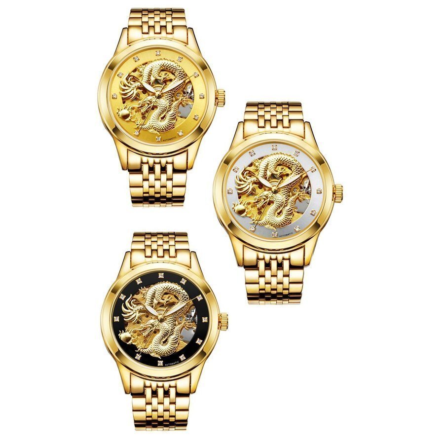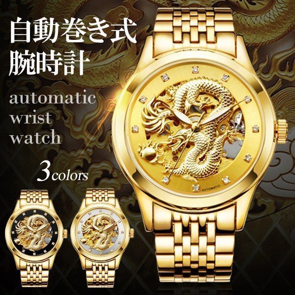 自動巻き式 生活防水 『 ゴールド ドラゴンウォッチ 』 金×銀 |